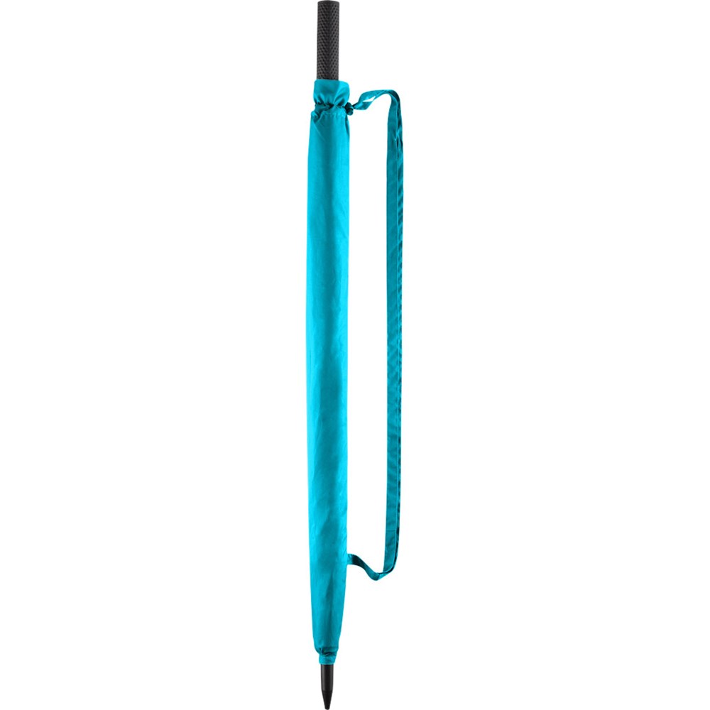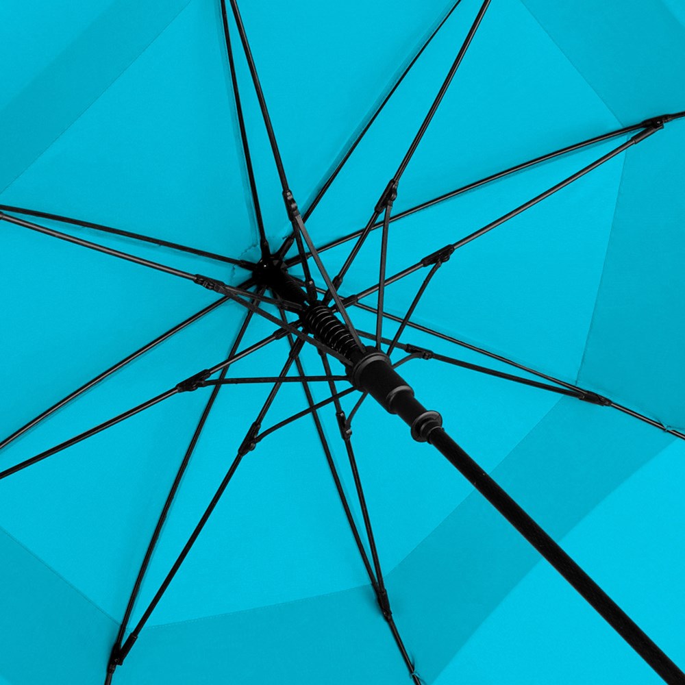 Exclusive automatic golf umbrella for two people with handle in golf design Convenient automatic function for quick opening, high-quality Windproof PLUS system for maximum frame flexibility in stormy conditions, sturdy fibreglass shaft, flexible fibreglass ribs, overlapping ventilation cover to regulate pressure in stronger gusts, cover with two closing straps for optimal fixation in closed state, exclusive Soft-Touch handle with golf ball dimpled surface, silver push-button and promotional labelling option, convenient carry case with shoulder strap, large, accommodating diameter