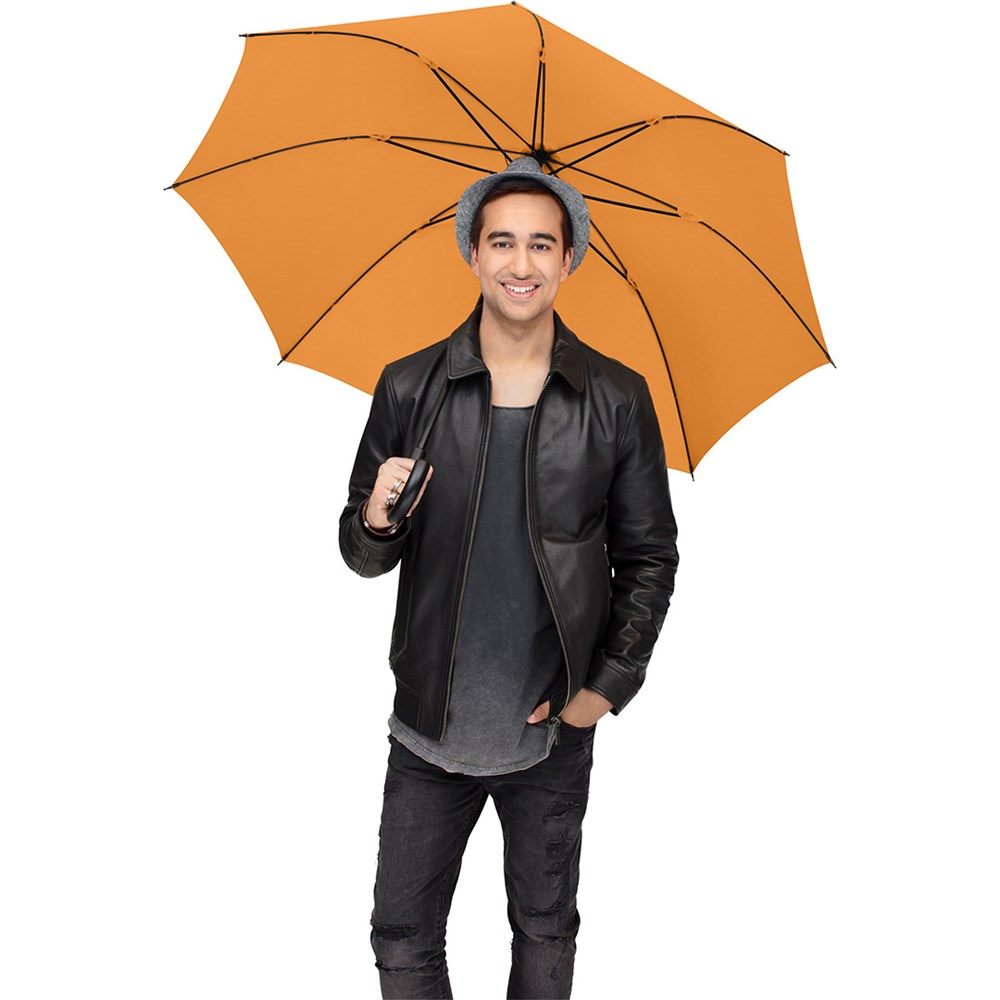 Attractively priced automatic golf umbrella for two people with Windproof system Convenient automatic function for quick opening, Windproof system for higher flexibility and stability in windy conditions, flexible fibreglass ribs, dull black plastic crook handle, higher corrosion protection due to galvanized steel shaft. Also available as regular umbrella (art. 1104).