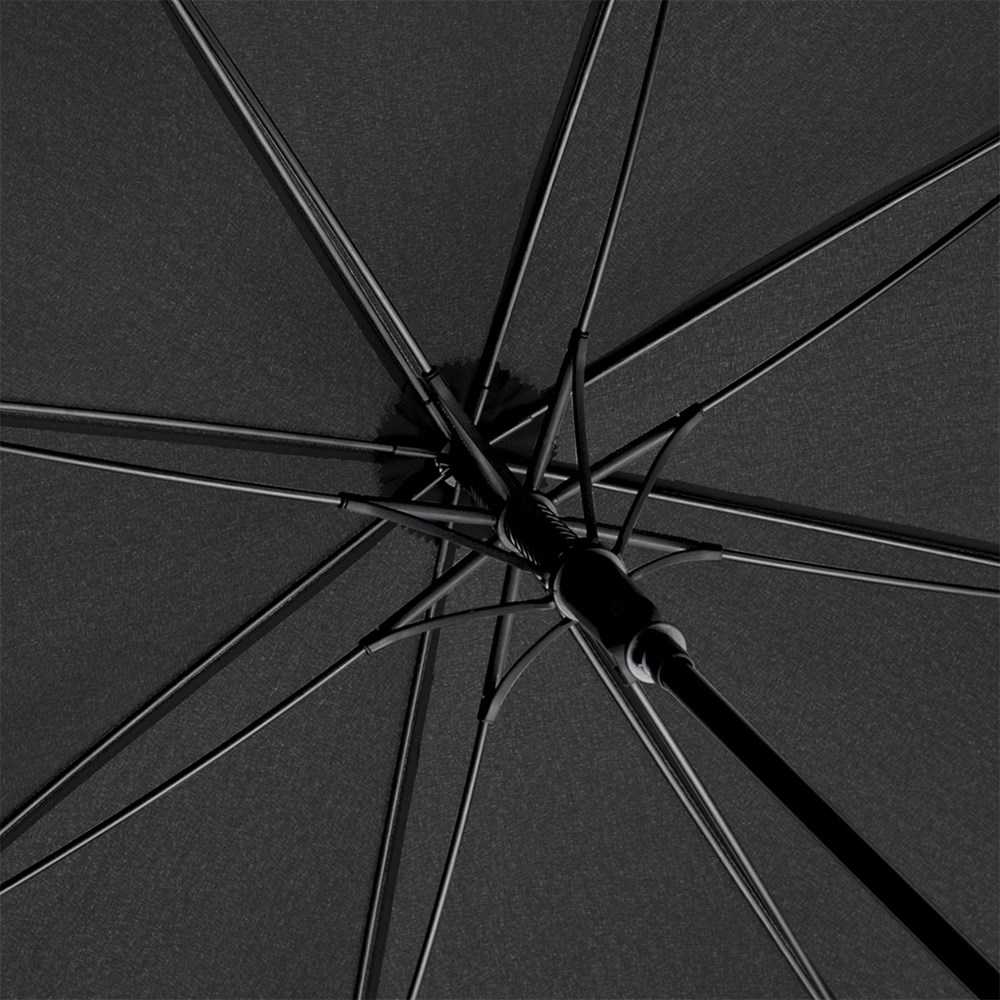 Convenient automatic golf umbrella for two people with hand friendly soft crook handle Conventient automatic function for quick opening, high-quality Windproof PLUS system for maximum frame flexibility in stormy conditions, flexible fibreglass ribs, soft crook handle with integrated push-button, higher corrosion protection due to galvanized steel shaft, large, accommodating diameter