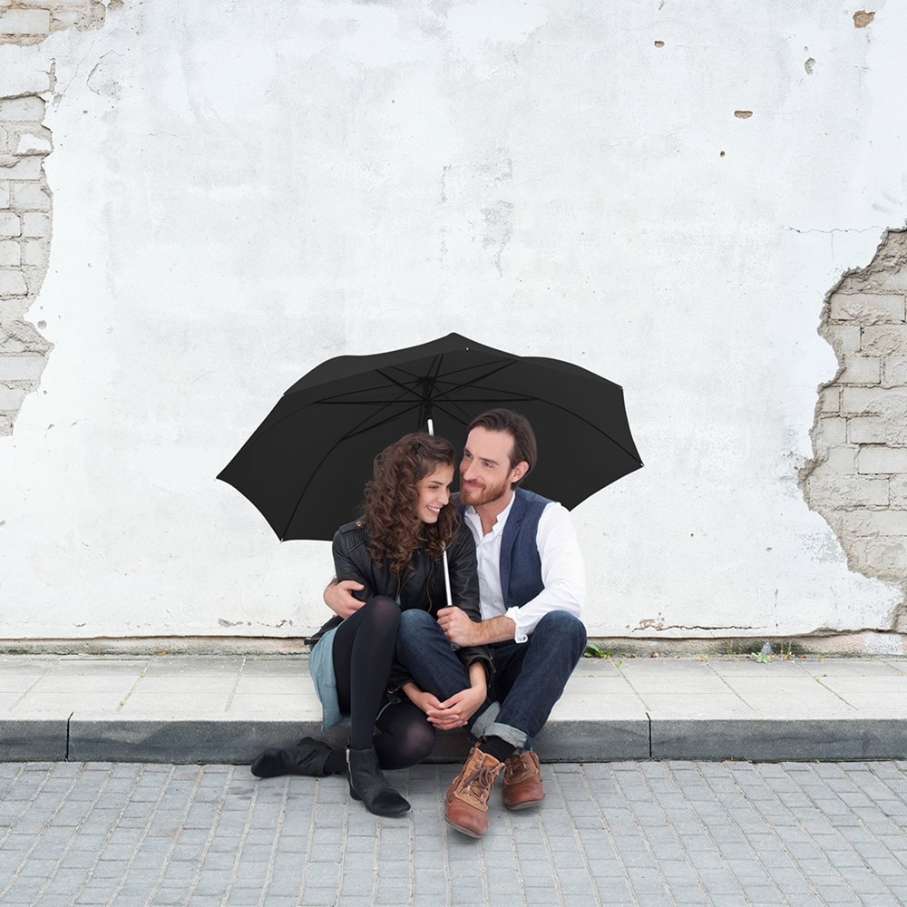 Stylish automatic golf umbrella for two people with colour co-ordinated handle and cover Convenient automatic function for quick opening, high-quality Windproof PLUS system for maximum frame flexibility in stormy conditions, flexible fibreglass ribs, lightweight but sturdy aluminium frame, attractive Soft-Touch handle with silver push-button and promotional labelling option, large, accommodating diameter. Also available as mini umbrella (art. 5565, 5460) and regular umbrella (art. 7560).
