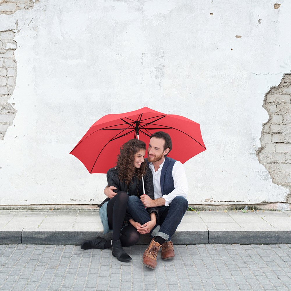 Stylish automatic golf umbrella for two people with colour co-ordinated handle and cover Convenient automatic function for quick opening, high-quality Windproof PLUS system for maximum frame flexibility in stormy conditions, flexible fibreglass ribs, lightweight but sturdy aluminium frame, attractive Soft-Touch handle with silver push-button and promotional labelling option, large, accommodating diameter. Also available as mini umbrella (art. 5565, 5460) and regular umbrella (art. 7560).