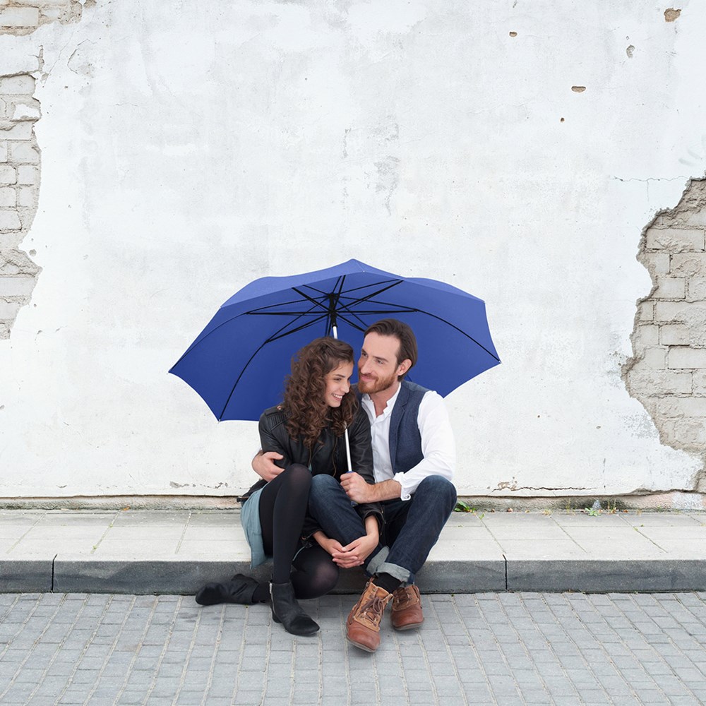Stylish automatic golf umbrella for two people with colour co-ordinated handle and cover Convenient automatic function for quick opening, high-quality Windproof PLUS system for maximum frame flexibility in stormy conditions, flexible fibreglass ribs, lightweight but sturdy aluminium frame, attractive Soft-Touch handle with silver push-button and promotional labelling option, large, accommodating diameter. Also available as mini umbrella (art. 5565, 5460) and regular umbrella (art. 7560).
