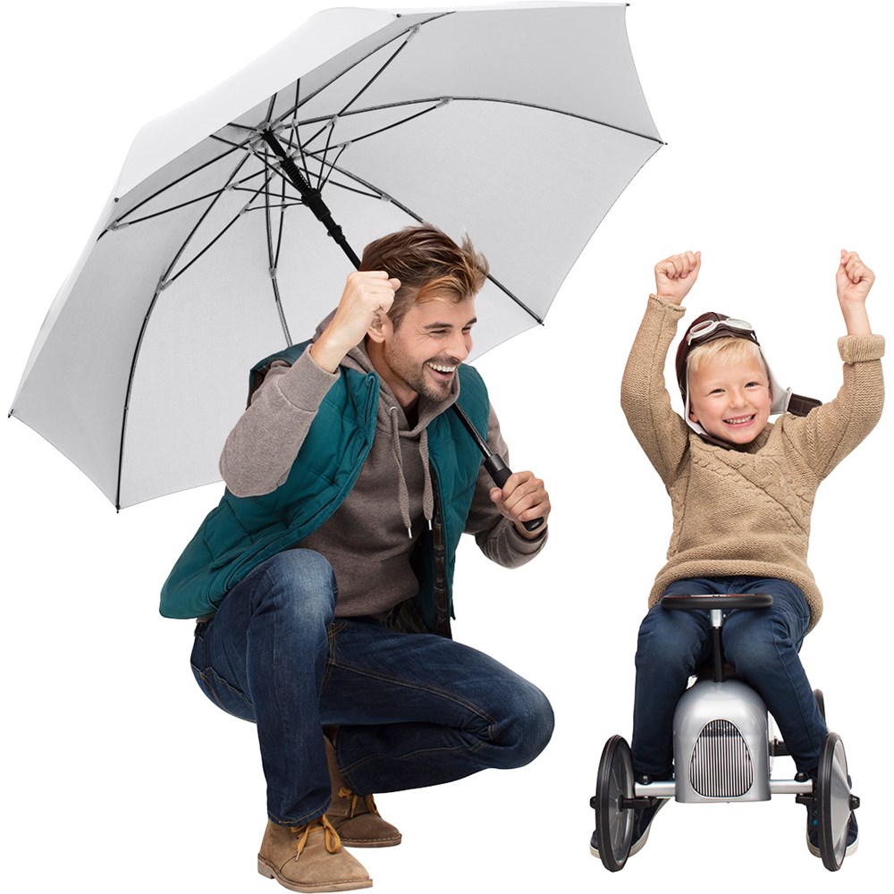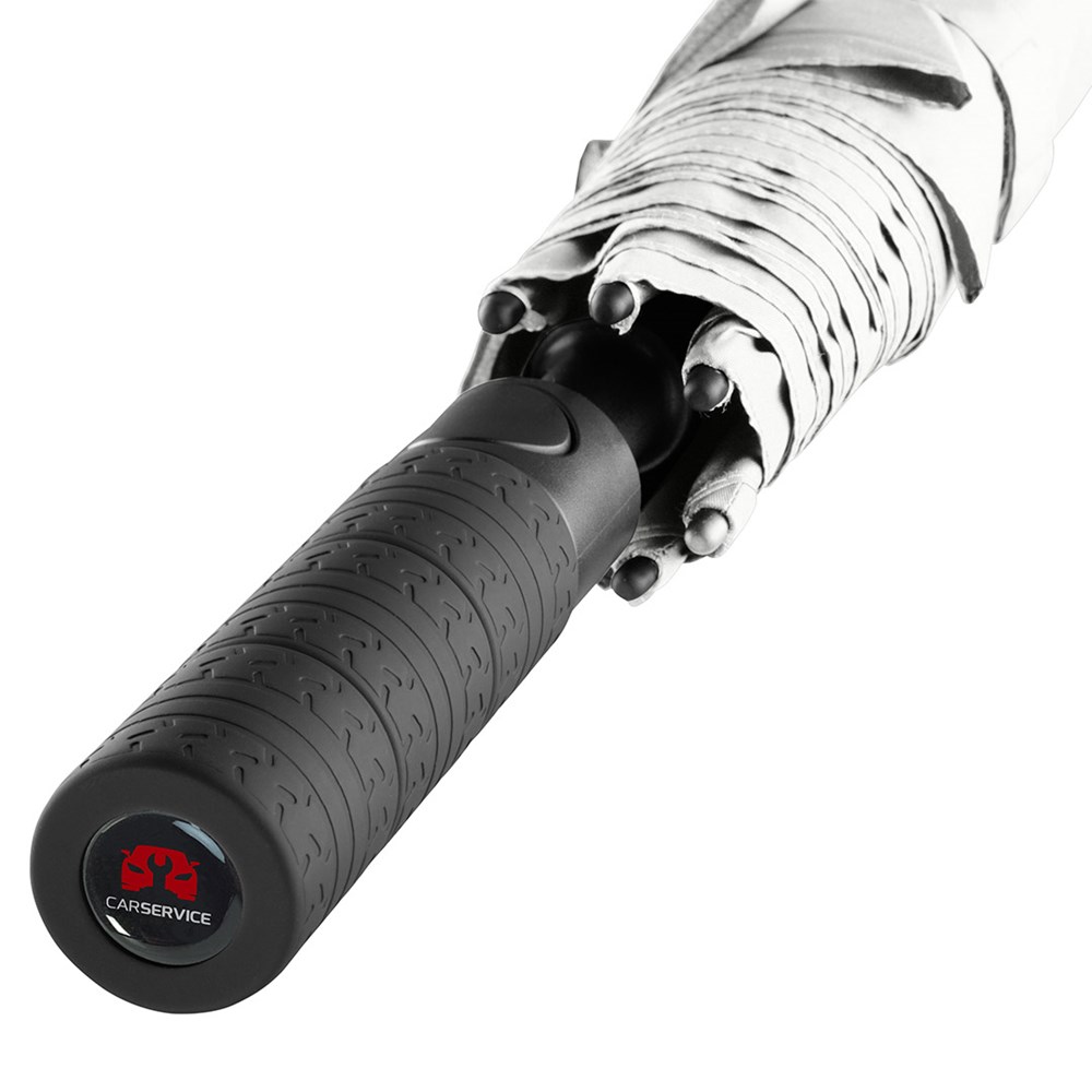 Exclusive automatic golf umbrella for two people with tyre profile design elements Convenient automatic function for quick opening, high-quality Windproof PLUS system for maximum frame flexibility in stormy conditions, flexible fibreglass ribs with grey joints, tyre profile design soft-feel handle with integrated push-button and promotional labelling option. Also available as mini umbrella (art. 5455).