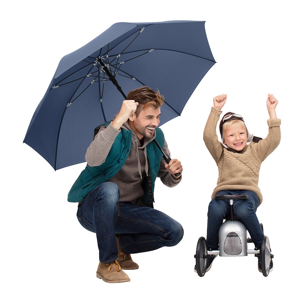 Exclusive automatic golf umbrella for two people with tyre profile design elements Convenient automatic function for quick opening, high-quality Windproof PLUS system for maximum frame flexibility in stormy conditions, flexible fibreglass ribs with grey joints, tyre profile design soft-feel handle with integrated push-button and promotional labelling option. Also available as mini umbrella (art. 5455).