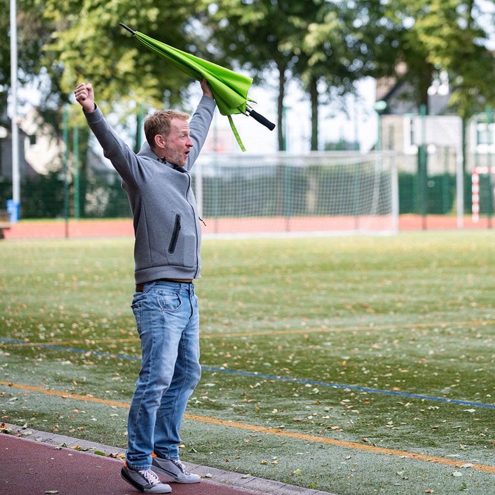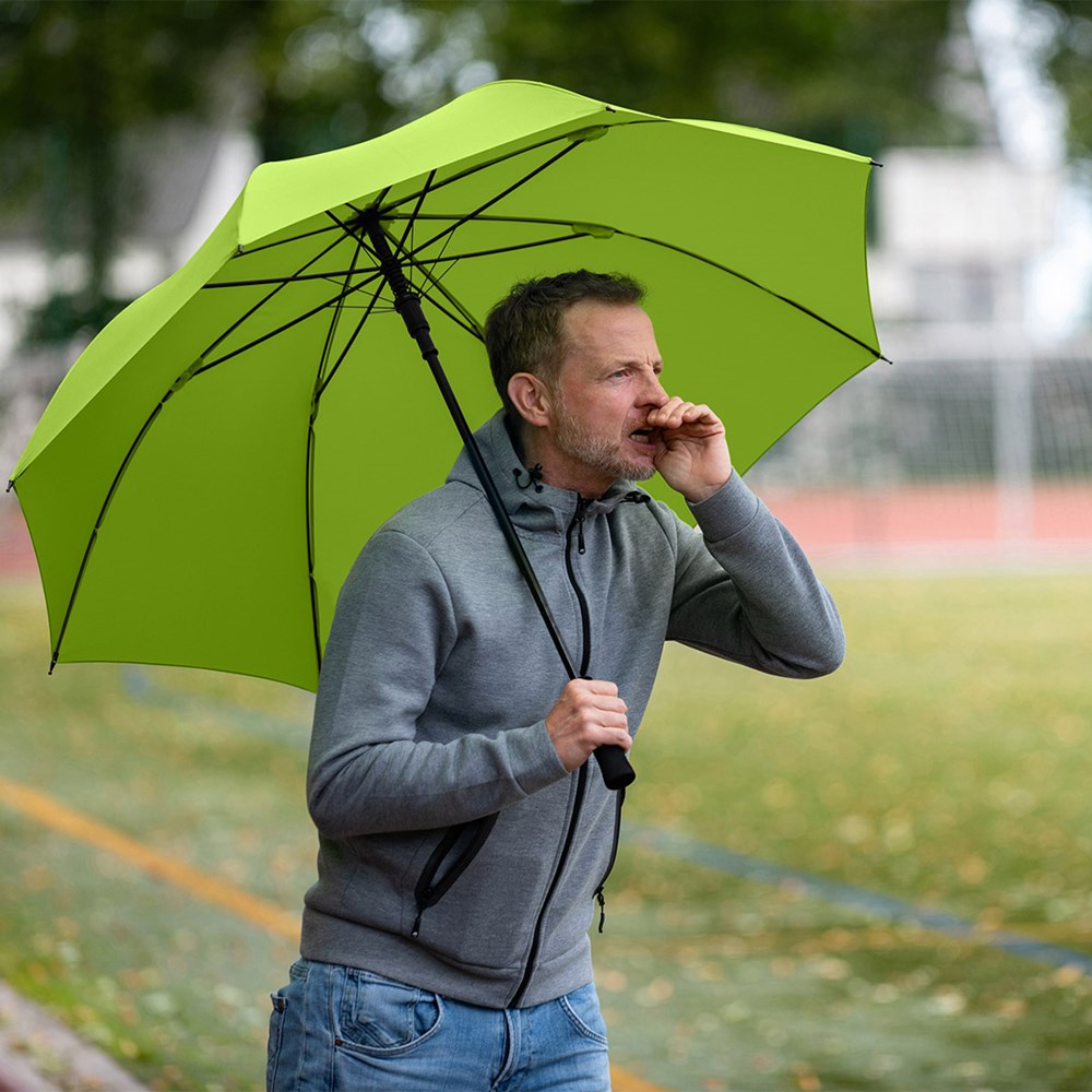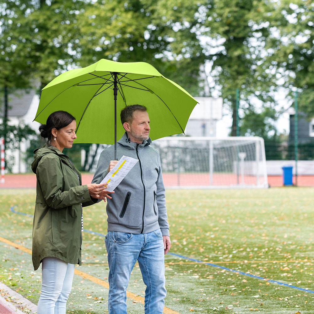 Convenient automatic golf umbrella for two people with hand friendly soft handle Convenient automatic function for quick opening, Windproof system for higher flexibility and stability in windy conditions, flexible fibreglass ribs, straight soft handle, higher corrosion protection due to galvanized steel shaft, large, accommodating diameter