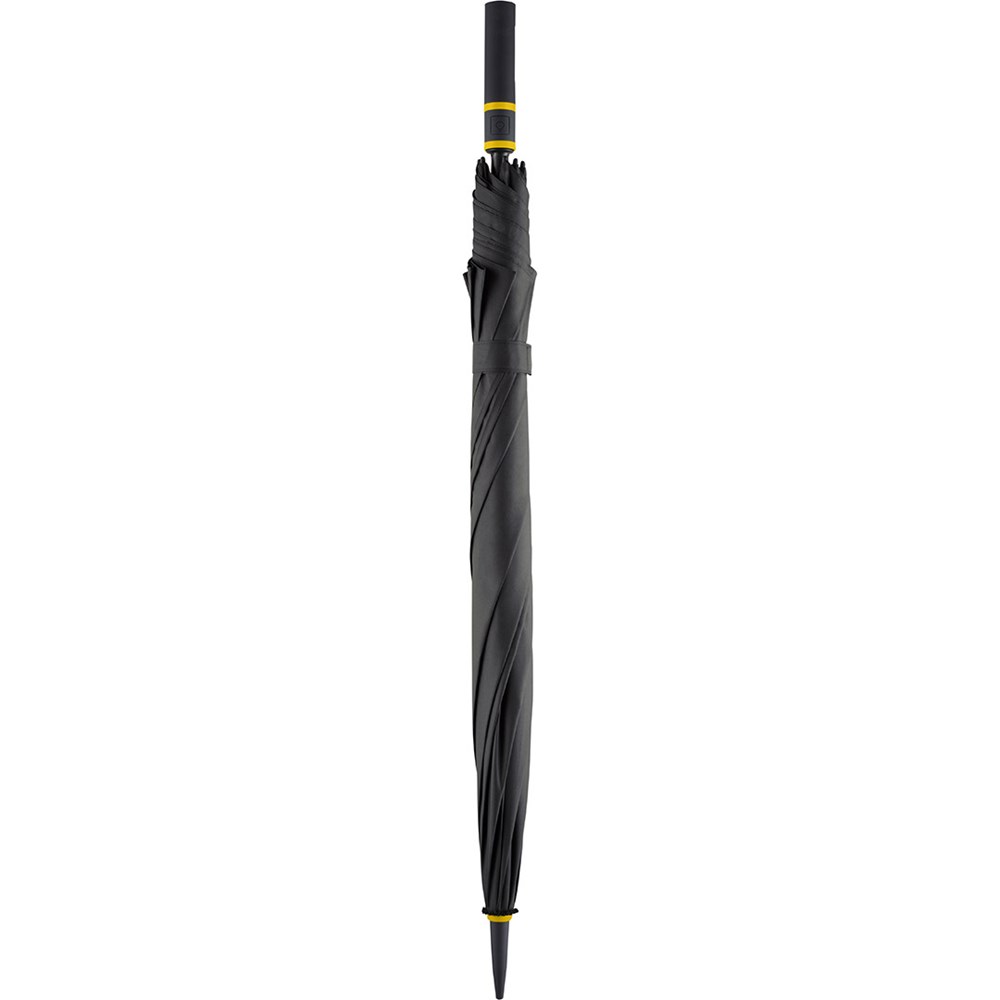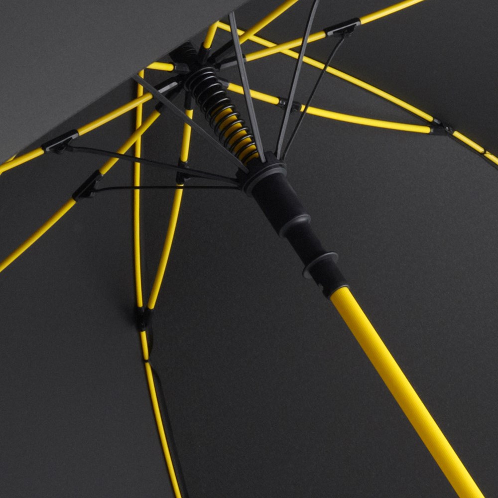 Stylish automatic golf umbrella for two people with coloured shaft and coloured elements Convenient automatic function for quick opening, high-quality Windproof PLUS system for maximum frame flexibility in stormy conditions, flexible fibreglass ribs, stable steel shaft with coloured plastic tube, polyester pongee material made of recycled plastics, eco-friendly thanks to original waterSAVE cover material, with waterSAVE® label on the closing strap, exclusive straight Soft-Feel handle with coloured handle rings and double promotional labelling option. Also available as mini umbrella (art. 5084, 5484, 5584) and as midsize umbrella (art. 4784).