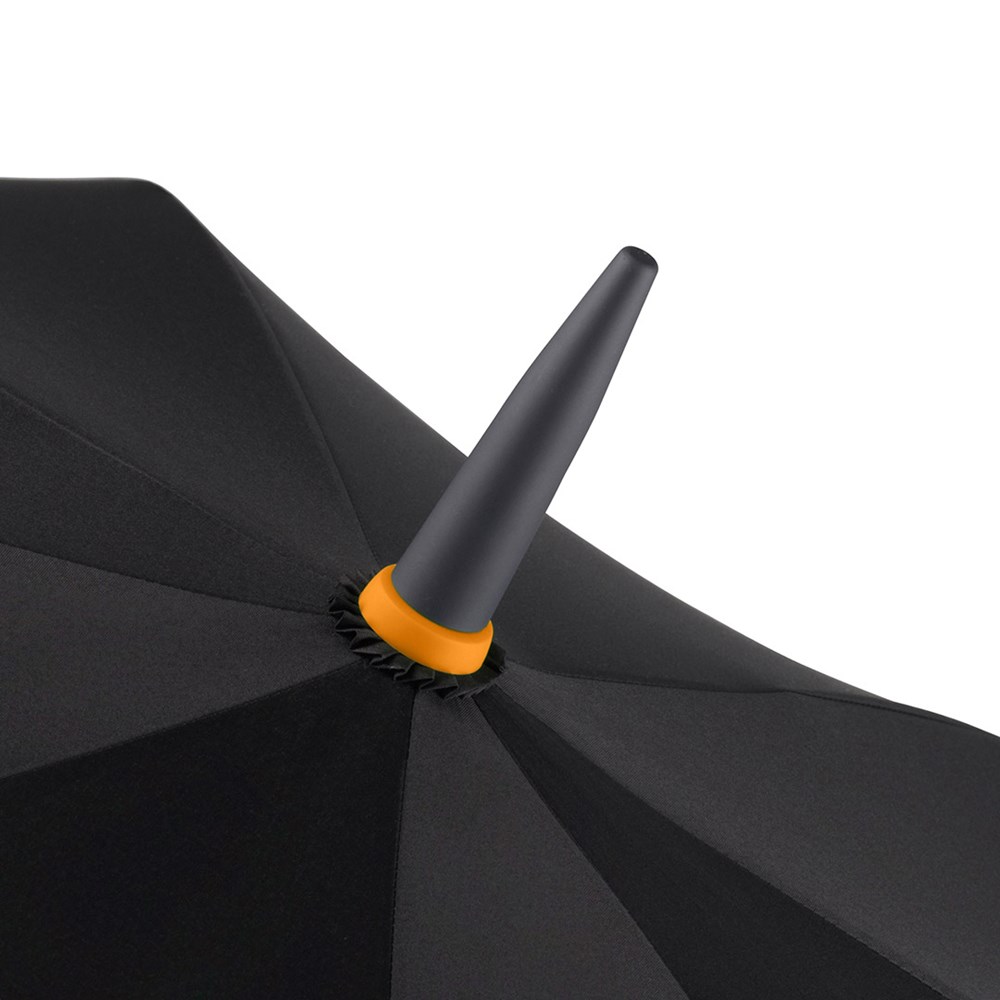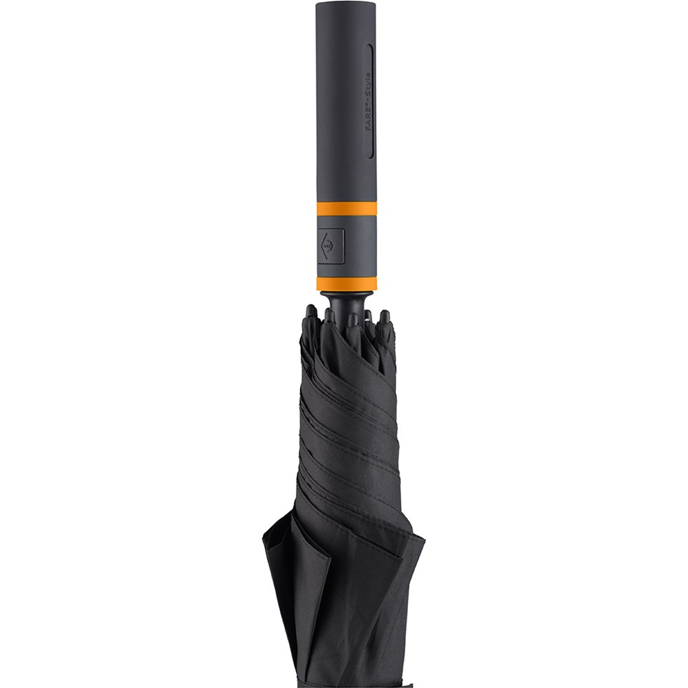 Stylish automatic golf umbrella for two people with coloured shaft and coloured elements Convenient automatic function for quick opening, high-quality Windproof PLUS system for maximum frame flexibility in stormy conditions, flexible fibreglass ribs, stable steel shaft with coloured plastic tube, polyester pongee material made of recycled plastics, eco-friendly thanks to original waterSAVE cover material, with waterSAVE® label on the closing strap, exclusive straight Soft-Feel handle with coloured handle rings and double promotional labelling option. Also available as mini umbrella (art. 5084, 5484, 5584) and as midsize umbrella (art. 4784).