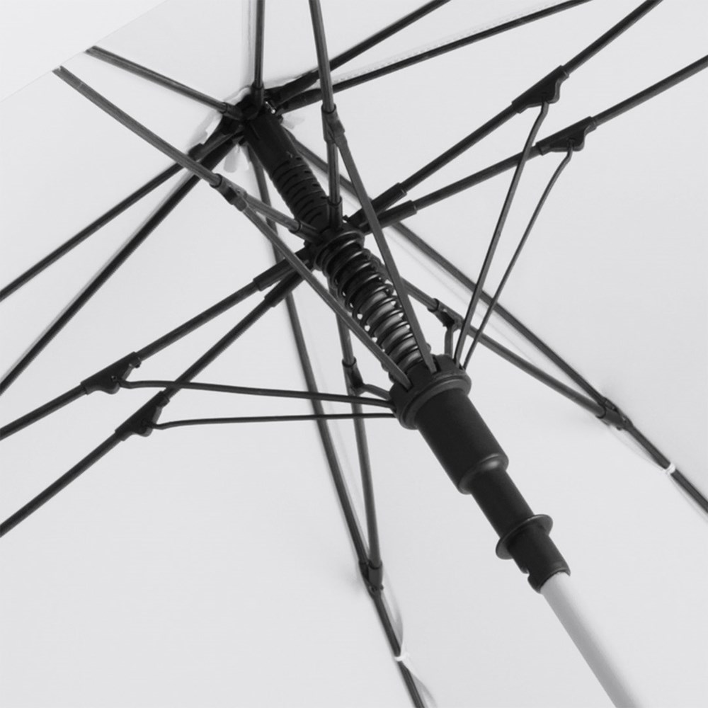 Square shape golf umbrella for two people Convenient automatic function for quick opening, high-quality Windproof PLUS system for maximum frame flexibility in stormy conditions, flexible fibreglass ribs, coloured tube over the steel shaft, straight Soft-Touch handle with integrated push button and double promotional labelling option, large, accommodating diameter
