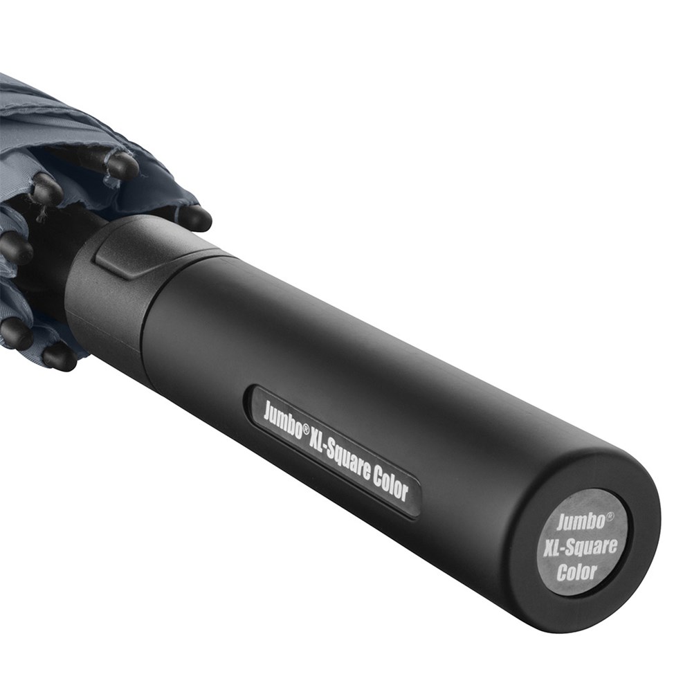 Square shape golf umbrella for two people Convenient automatic function for quick opening, high-quality Windproof PLUS system for maximum frame flexibility in stormy conditions, flexible fibreglass ribs, coloured tube over the steel shaft, straight Soft-Touch handle with integrated push button and double promotional labelling option, large, accommodating diameter