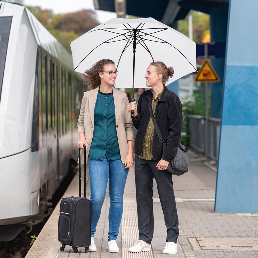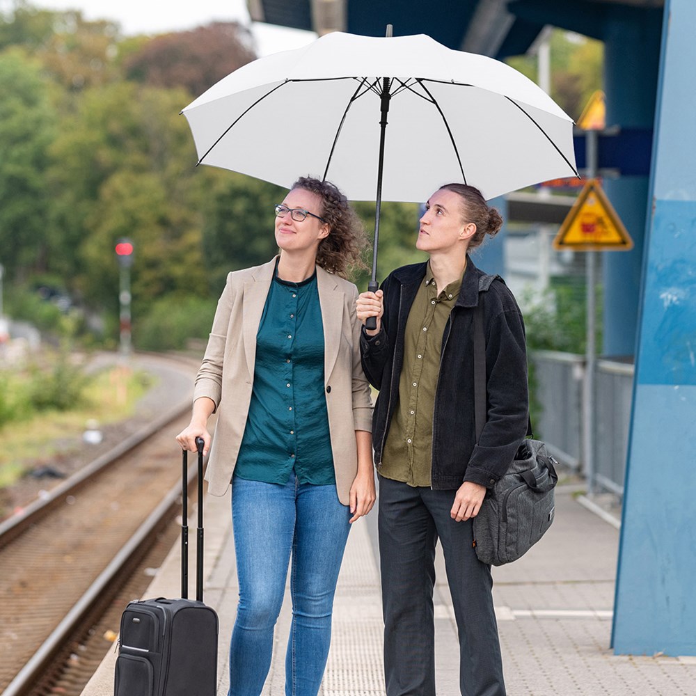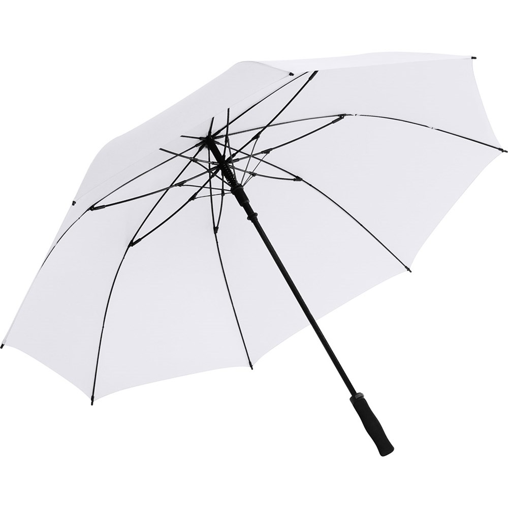 Highly durable automatic golf umbrella with large diameter for two people Convenient automatic function for quick opening, high-quality Windproof PLUS system for maximum frame flexibility in stormy conditions, sturdy fibreglass shaft, flexible fibreglass ribs, straight soft handle with flat push button, large, accommodating diameter