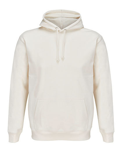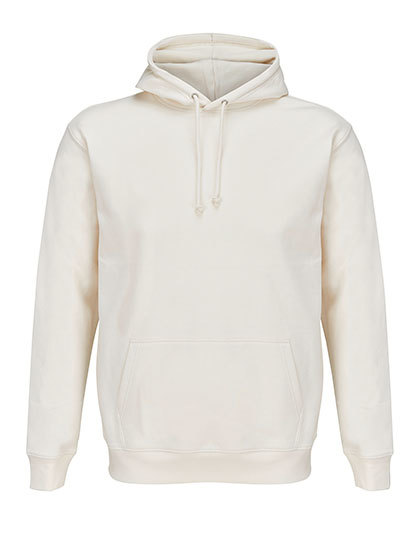 Unisex | Cotton / recycled Polyester | Set-in- sleeves | Ribbed collar, cuff and hem | Kangaroo pocket | Lined hood with tone-on-tone lace and metal eyelets | Brushed fleece | Tear-Away label