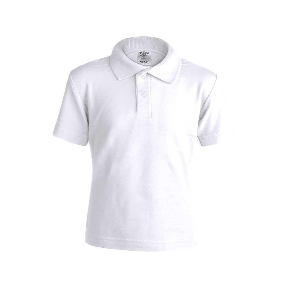 YPS180 Keya, piqué polo shirt for children in 100% cotton material of 180g/m2. With two matching color buttons and available in white color. Sizes XS, S, M, L, XL.