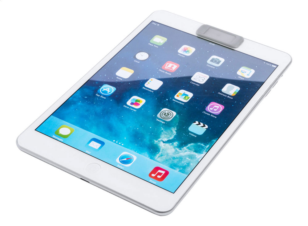 Plastic, anti spy webcam cover with sliding cover and adhesive back.