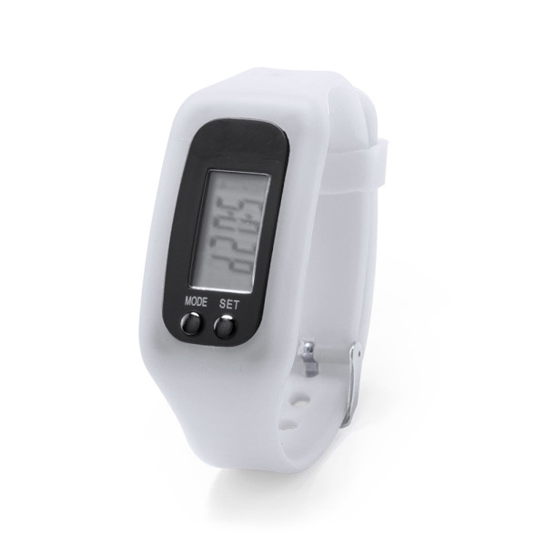 Rectangular, LCD screen, sporty digital watch with adjustable silicone strap and water splash resistant. Suitable for all types of sports and leisure activities. With button cell battery included and presented in an attractive design box.