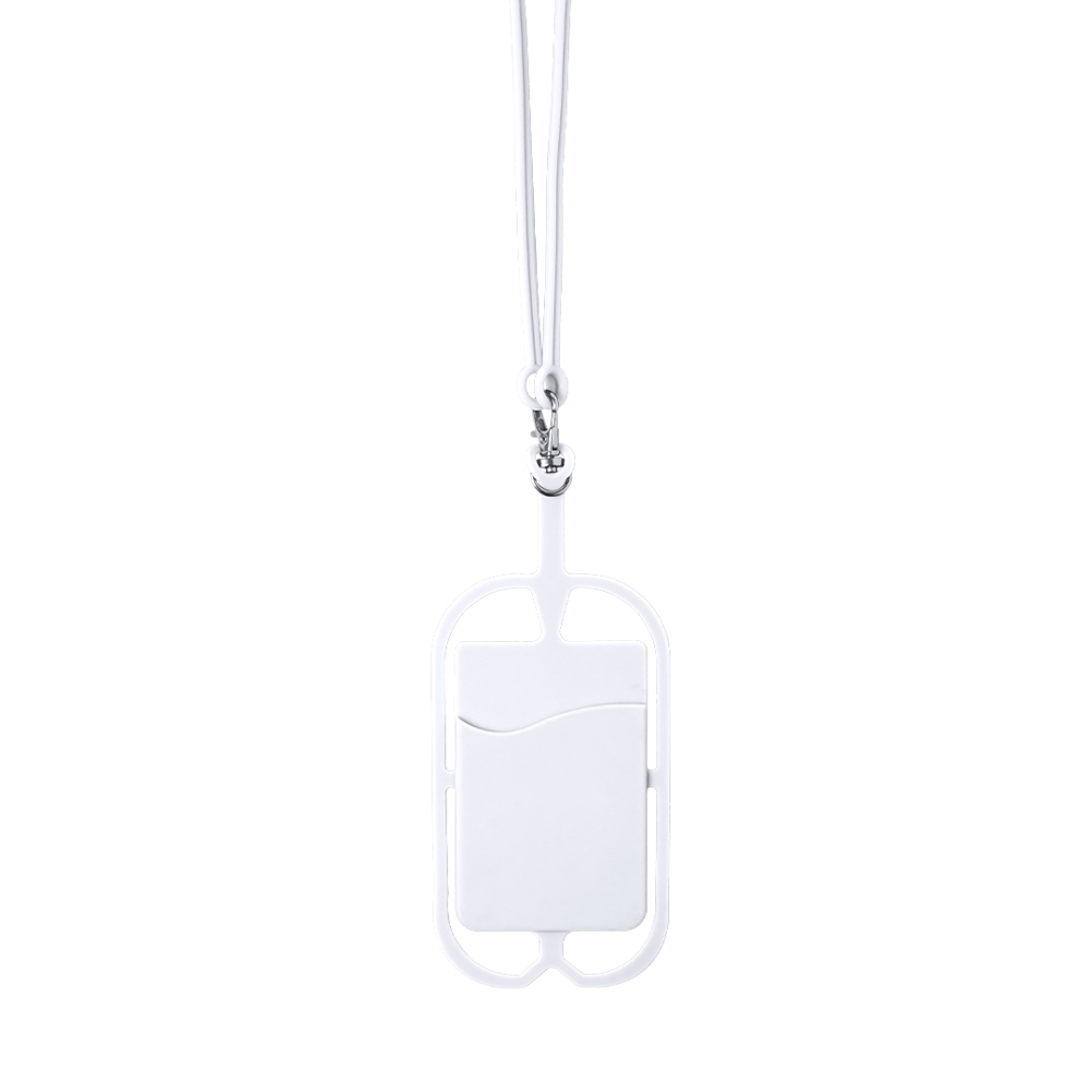 Practical and comfortable silicone lanyard in bold colors with built-in smartphone holder and card pocket. With adjustable accessory and carabiner closure. This item can only be printed in 1 colour (Black/White).