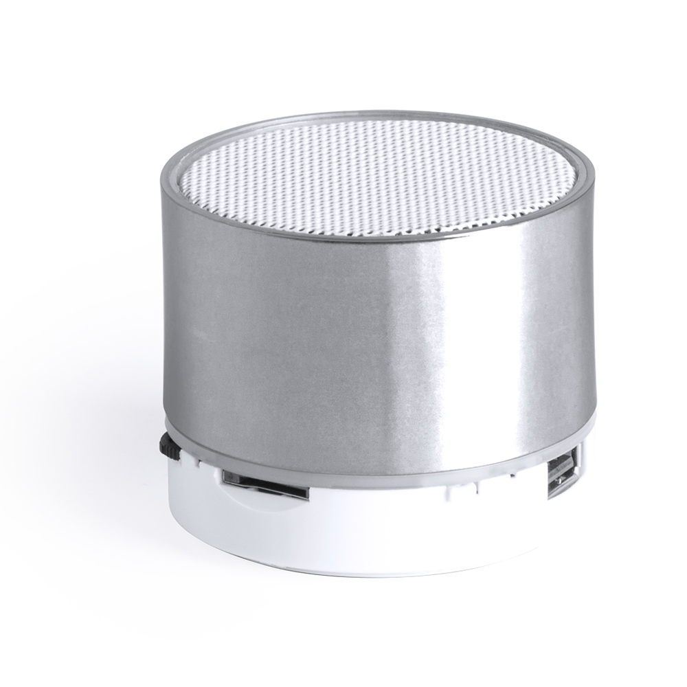 Compact Bluetooth® docking speaker with illuminated inside. Outside surface especially designed for laser printing to illuminate the marked logo. Bicolor design with smooth finish and Bluetooth® 3.0 connection, offers 3W power, hands-free function, a micro SD card slot up to 32GB, FM radio function, auxiliary line input via 3.5mm jack connection and non-slip rubber mounts on the base. Compatible with iOS and Android, includes mini USB charging cable, 3.5mm auxiliary jack cable and comes in an attractive design box.