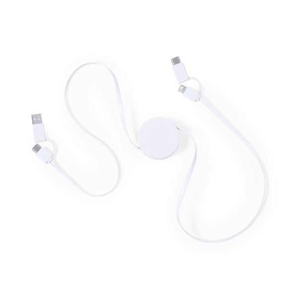 Ultra compact design, extendable charger. Connections Type C (input and output) and dual Micro USB/Lightning. Charging and data transfer function. Wide branding surface and presented in an individual bag.