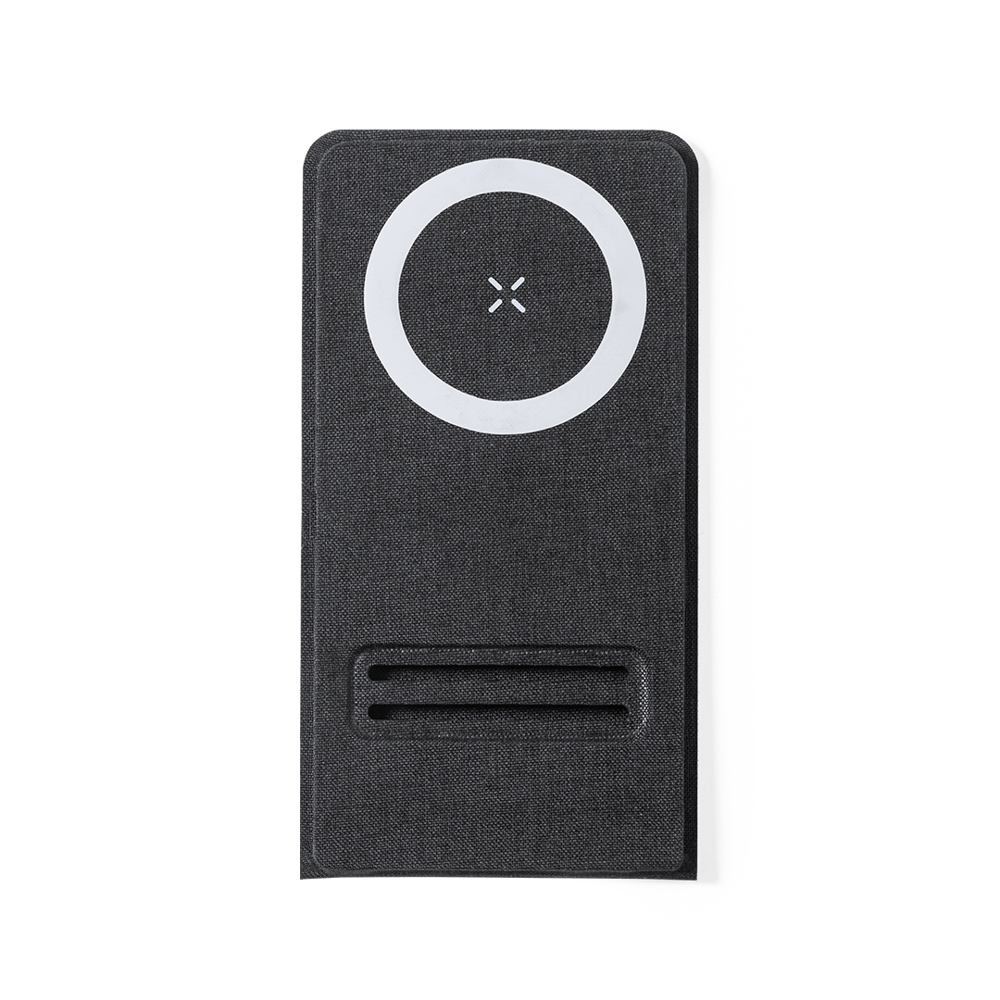 Wireless charger 15W. Made in resistant polyester 300D and with magnetic attachment for using the device while charging it, adhesive ring included. Compatible with all devices with Magsafe and Qi technology. Small folded size for portability and presented in an individual, attractive design box.