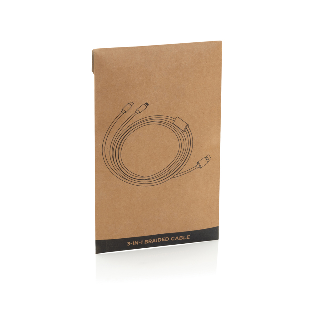 Luxury braided 3 in 1 cable with type C and double-sided connector for iOS and Android devices... more