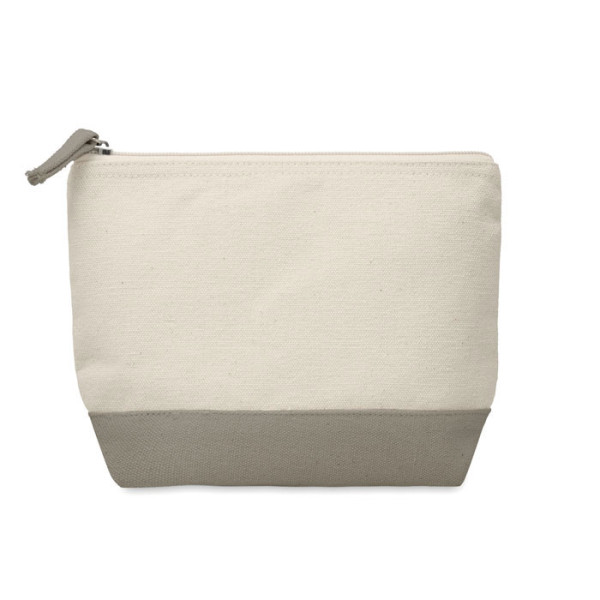 Cosmetic bag in cotton with coloured bottom and matching zipper puller. 340 gr/m².