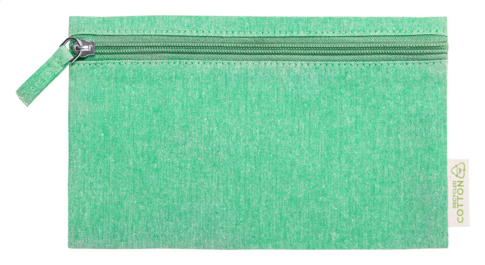 Zipped cosmetic bag in recycled cotton. 100% recycled cotton.