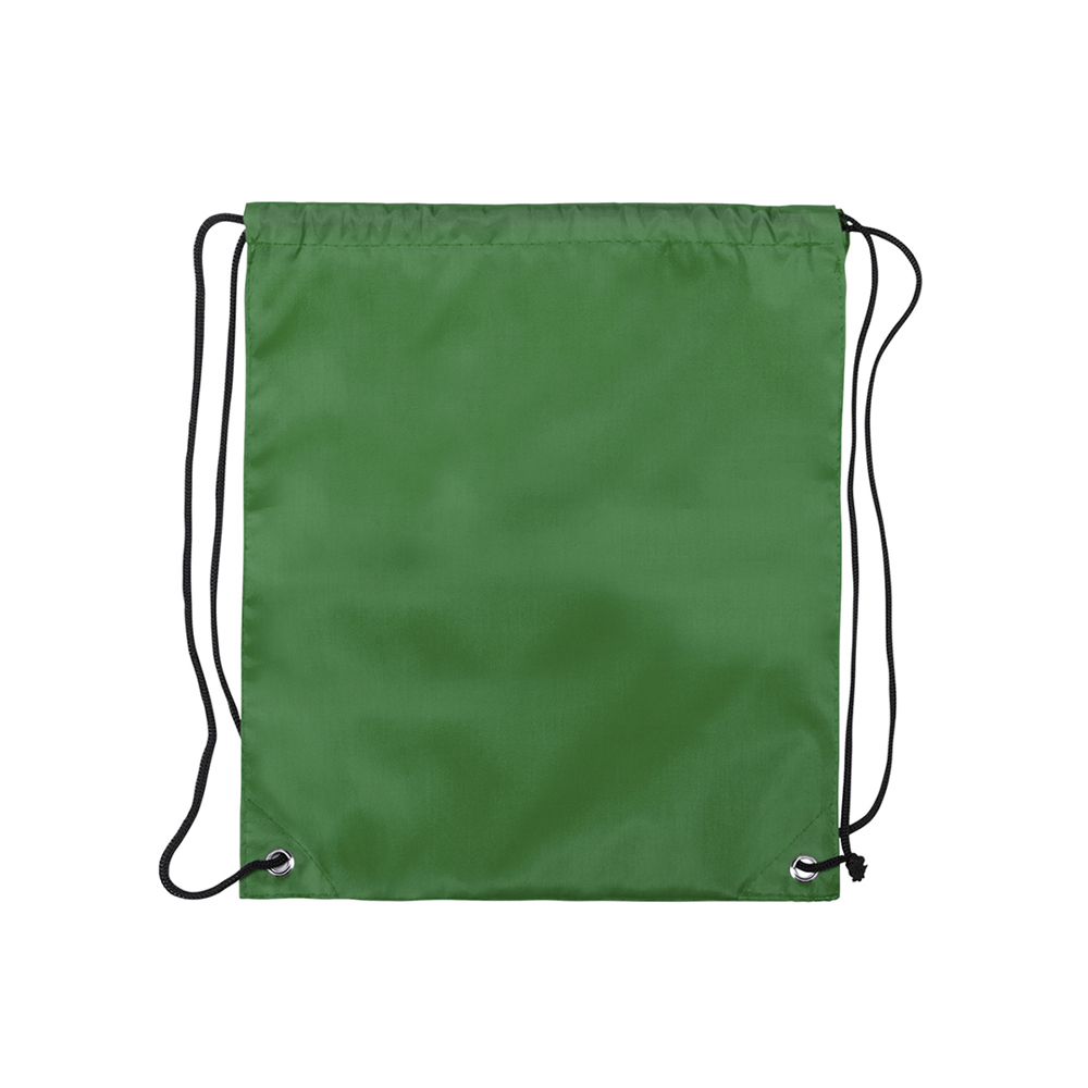 Rucksack mit Kordelzug für Kinder aus weichem 210T Polyester in kräftigen Farben. Mit Zugbändern in Schwarz und Ecken mit Metallösen zur Verstärkung.
