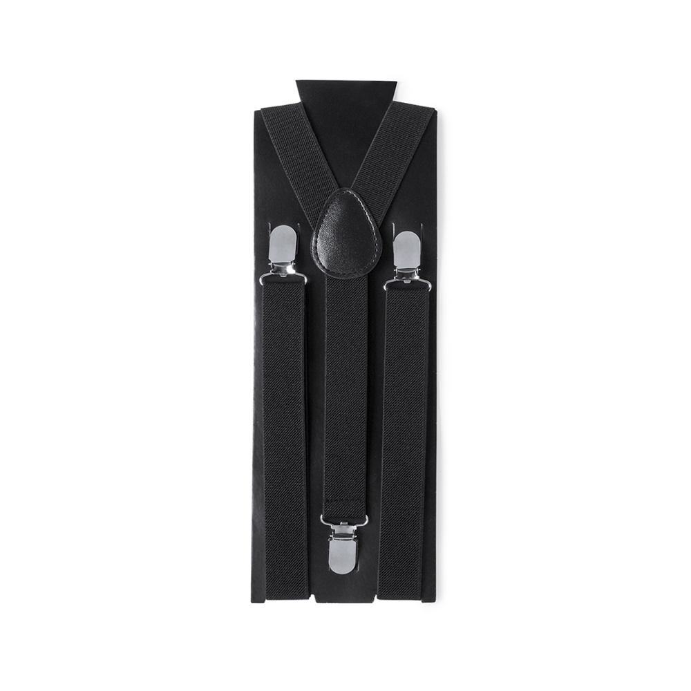 Elastische Hosenträger aus Polyester in schlichten Farben mit Metall-Kontrastdetails. Mit farblich passender Kunstlederverstärkung am Rücken. Präsentiert in einer originellen schwarzen Schachtel.