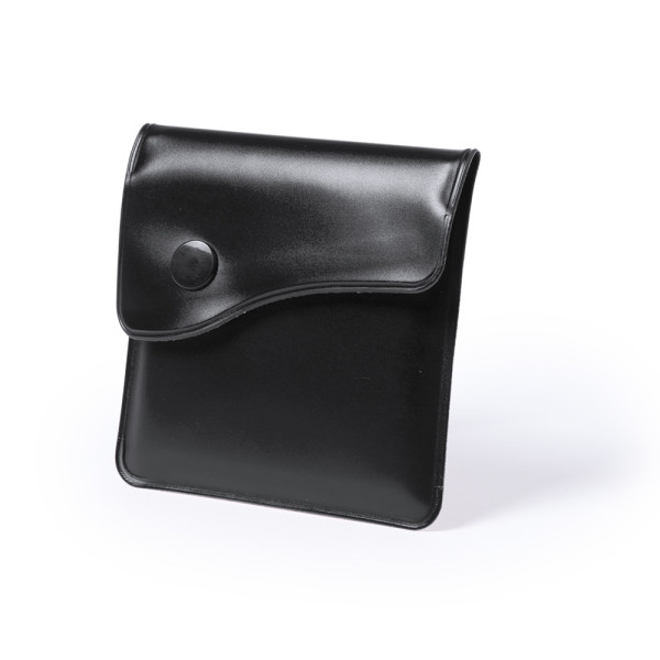 Taschen-Aschenbecher in lebendigen Farben und Umschlagklappe mit Druckknopf. Interieur aus schwer entflammbarem Aluminium.