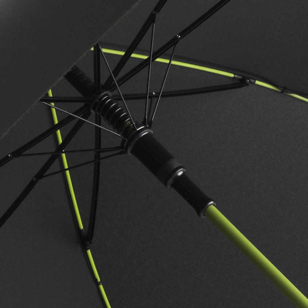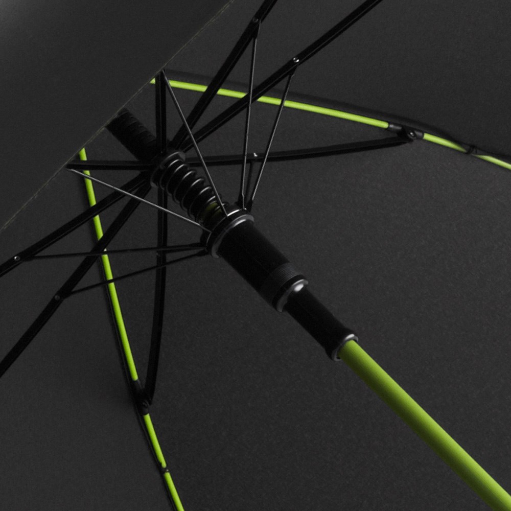 Schicker Automatik-Stockschirm mit farbigem Stock und farbigen Schienen Komfortable Automatik-Funktion zum schnellen Öffnen, Windproof-System für höhere Gestell-Flexibilität und bessere Windsicherheit, flexible Fiberglasschienen, stabiler Stahlstock mit farbiger Kunststoffummantelung, Polyester-Pongee Bezugsmaterial aus recycelten Kunststoffen, umweltfreundlich dank original waterSAVE® Bezugsmaterial, dezente Verzierung des Bezugs durch farbige Nähte, exklusiver Softgriff mit Werbeanbringungsmöglichkeit, Auslösetaste mit Werbeanbringungsmöglichkeit, mit waterSAVE® Label auf dem Schließband. Auch als Taschenschirm (Art. 5644) erhältlich.