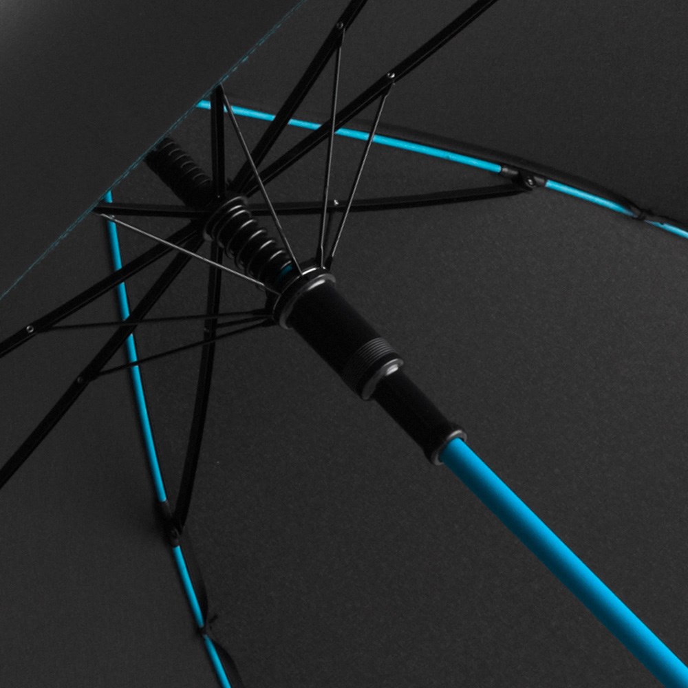 Schicker Automatik-Stockschirm mit farbigem Stock und farbigen Schienen Komfortable Automatik-Funktion zum schnellen Öffnen, Windproof-System für höhere Gestell-Flexibilität und bessere Windsicherheit, flexible Fiberglasschienen, stabiler Stahlstock mit farbiger Kunststoffummantelung, Polyester-Pongee Bezugsmaterial aus recycelten Kunststoffen, umweltfreundlich dank original waterSAVE® Bezugsmaterial, dezente Verzierung des Bezugs durch farbige Nähte, exklusiver Softgriff mit Werbeanbringungsmöglichkeit, Auslösetaste mit Werbeanbringungsmöglichkeit, mit waterSAVE® Label auf dem Schließband. Auch als Taschenschirm (Art. 5644) erhältlich.