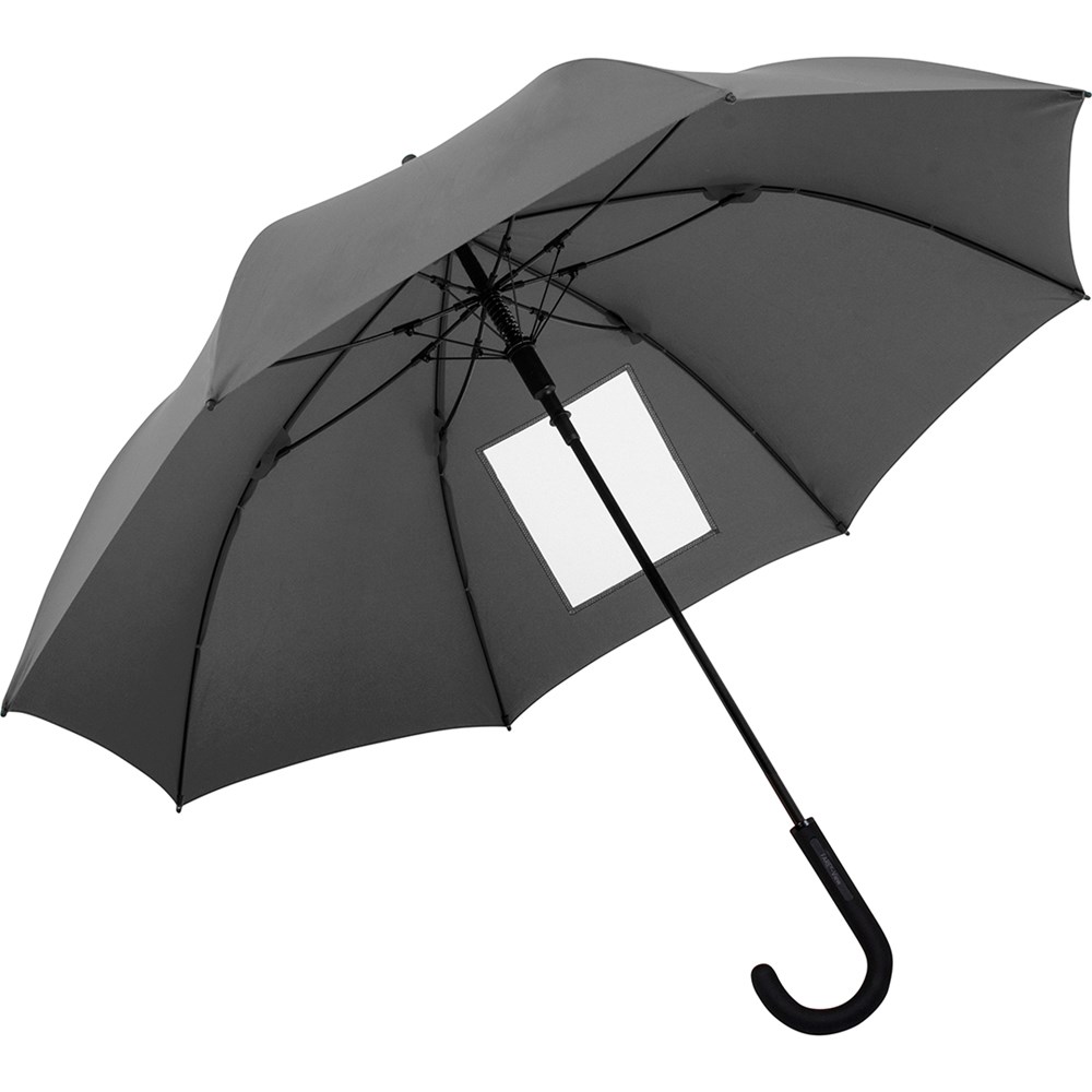 Besonderer Automatik-Stockschirm mit transparentem Sichtfenster Komfortable Automatik-Funktion zum schnellen Öffnen, hochwertiges Windproof-PLUS-System für eine maximale Gestell-Flexibilität bei stärkeren Windböen, flexible Fiberglasschienen, stabiler Stahlstock, Soft-Touch-Griff und -Top, Griff mit integrierter Auslösetaste und Werbeanbringungsmöglichkeit, höherer Korrosionsschutz durch schwarze Galvanisierung des Stahlstocks, transparentes Sichtfenster in einem Segment