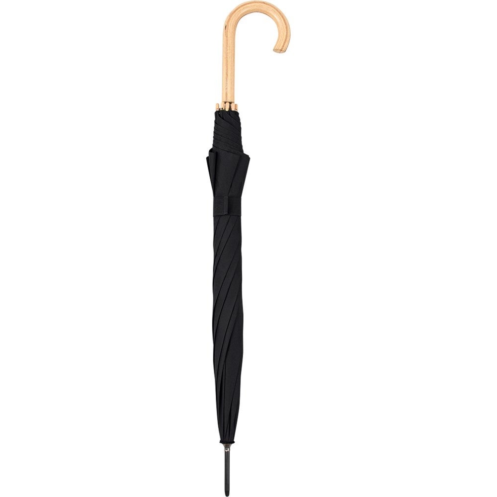 Preislich attraktiver nachhaltiger Stockschirm mit Bezug aus recycelten Kunststoffen Komfortable Automatik-Funktion zum schnellen Öffnen, Windproof-System für höhere Gestell-Flexibilität und bessere Windsicherheit, flexible Fiberglasschienen, Polyester-Pongee Bezugsmaterial aus recycelten Kunststoffen, farbabhängig auch mit waterSAVE®-Bezugmaterial und mit waterSAVE® Label auf dem Schließband erhältlich, Echtholzspitzen, Rundhakengriff aus Echtholz, höherer Korrosionsschutz durch schwarze Galvanisierung des Stahlstocks