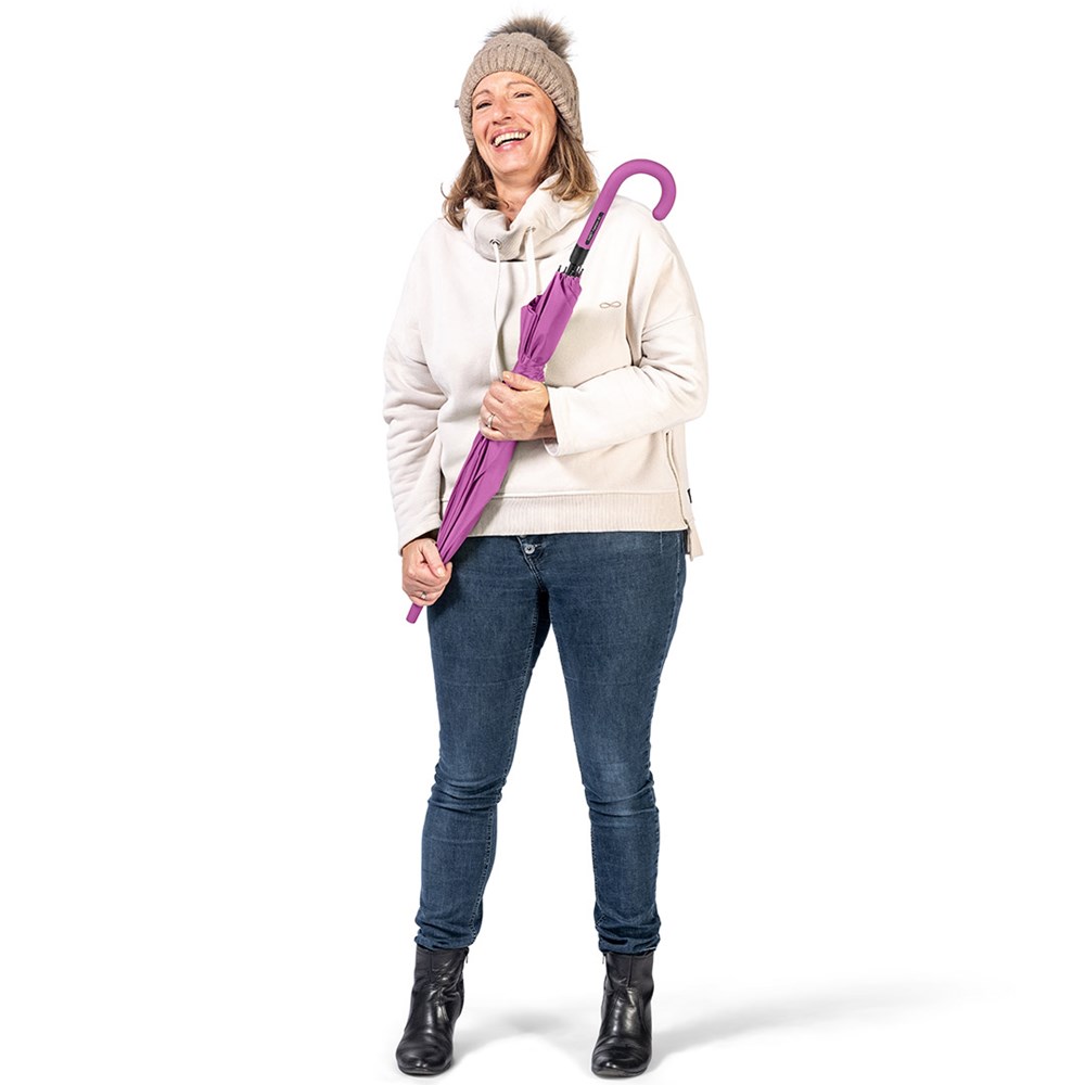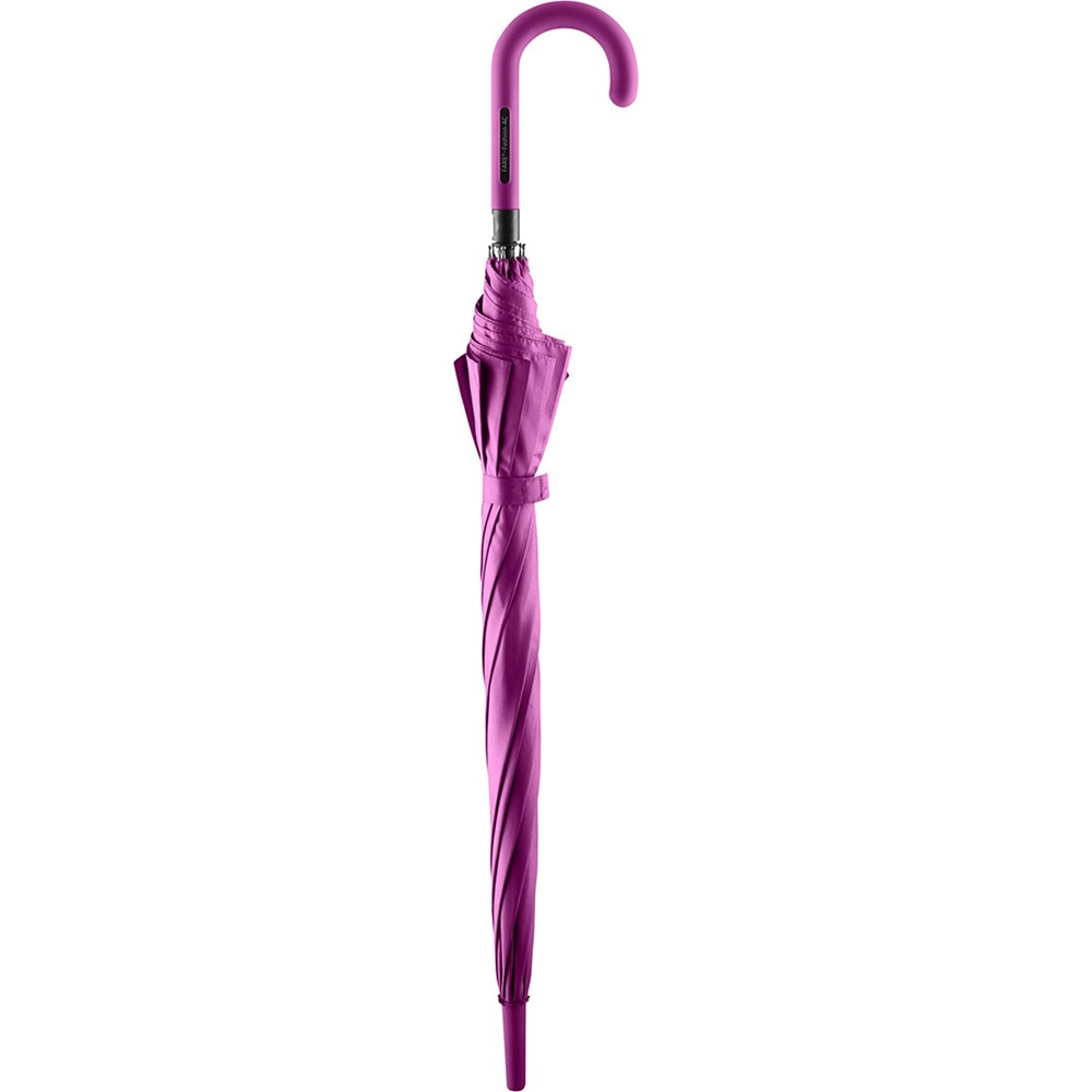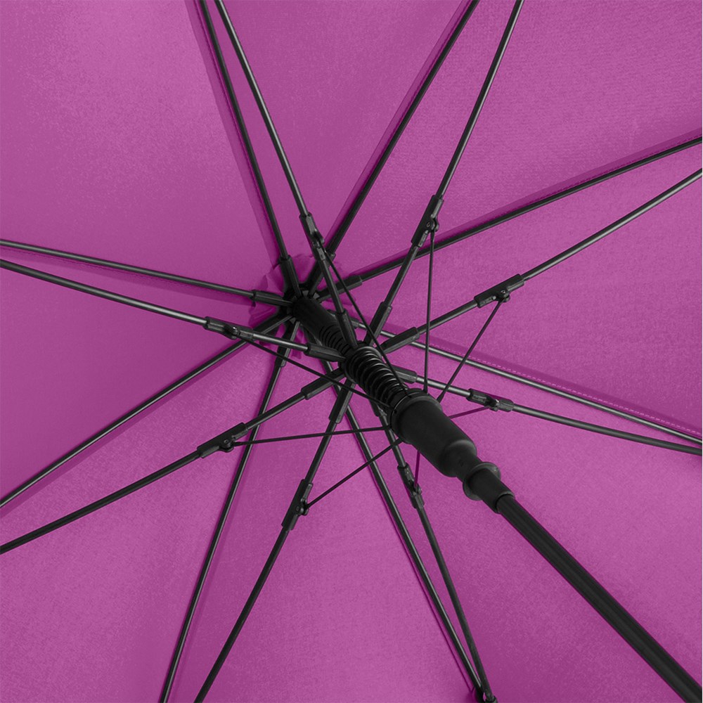 Ansprechender Automatik-Stockschirm in konsequent einheitlicher Farbgebung Komfortable Automatik-Funktion zum schnellen Öffnen, hochwertiges Windproof-PLUS-System für eine maximale Gestell-Flexibilität bei stärkeren Windböen, flexible Fiberglasschienen, stabiler Stahlstock, Soft-Touch-Griff und -Top farblich auf den Bezug abgestimmt, Griff mit integrierter Auslösetaste und Werbeanbringungsmöglichkeit, höherer Korrosionsschutz durch schwarze Galvanisierung des Stahlstocks