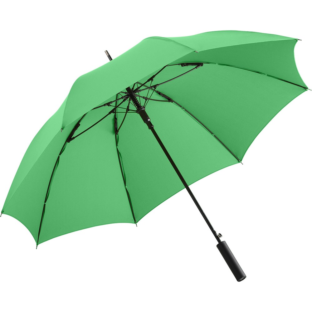 Preislich attraktiver Automatik-Stockschirm mit doppelter Werbeanbringungsmöglichkeit am Griff Komfortable Automatik-Funktion zum schnellen Öffnen, hochwertiges Windproof-PLUS-System für eine maximale Gestell-Flexibilität bei stärkeren Windböen, flexible Fiberglasschienen, gerader Griff mit doppelter Werbeanbringungsmöglichkeit, höherer Korrosionsschutz durch schwarze Galvanisierung des Stahlstocks