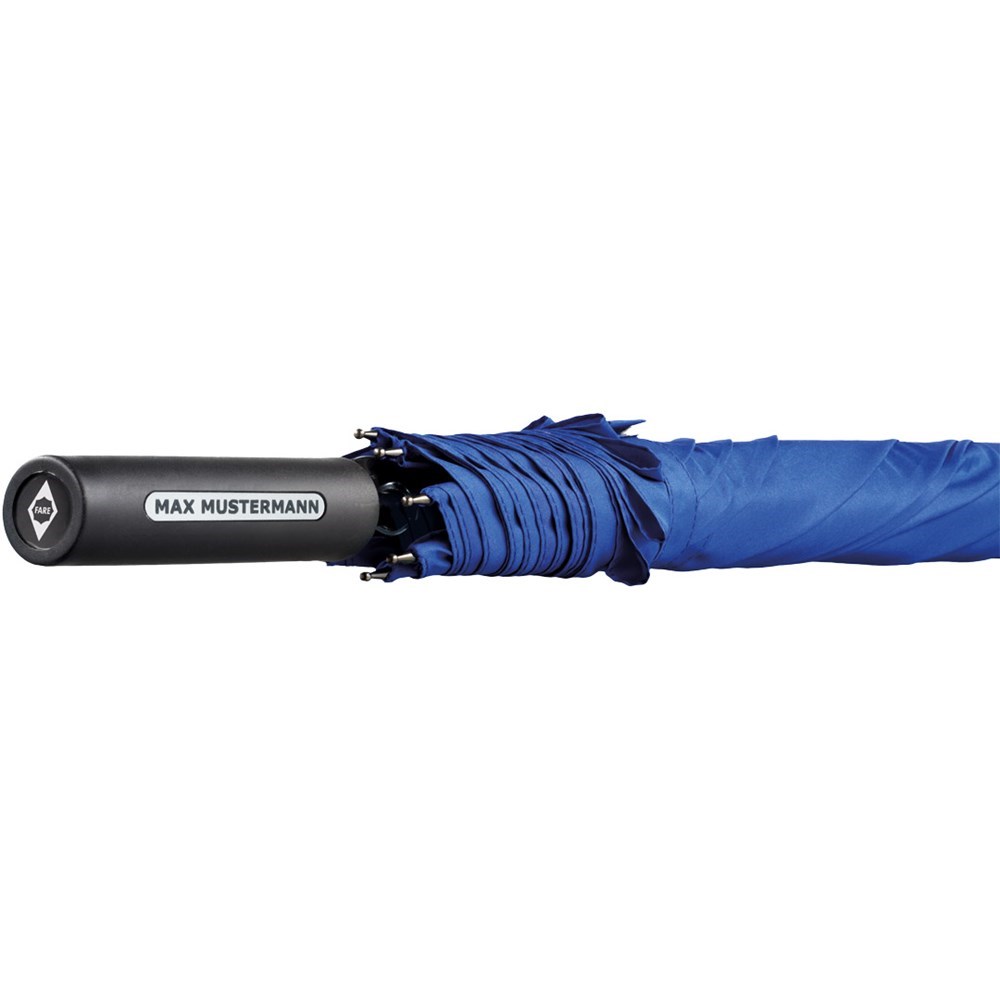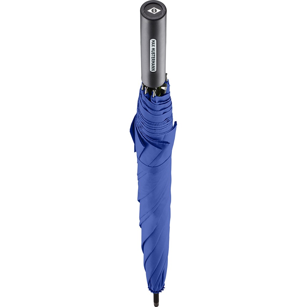 Preislich attraktiver Automatik-Stockschirm mit doppelter Werbeanbringungsmöglichkeit am Griff Komfortable Automatik-Funktion zum schnellen Öffnen, hochwertiges Windproof-PLUS-System für eine maximale Gestell-Flexibilität bei stärkeren Windböen, flexible Fiberglasschienen, gerader Griff mit doppelter Werbeanbringungsmöglichkeit, höherer Korrosionsschutz durch schwarze Galvanisierung des Stahlstocks