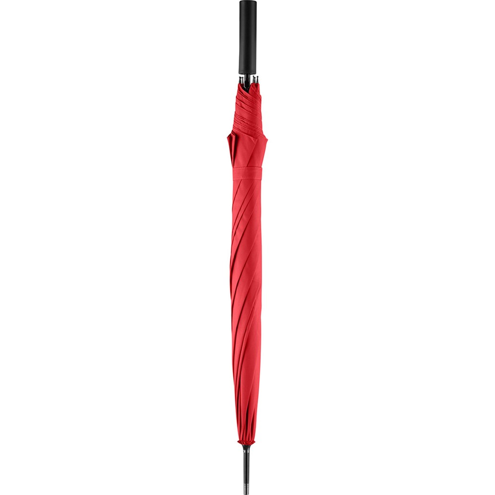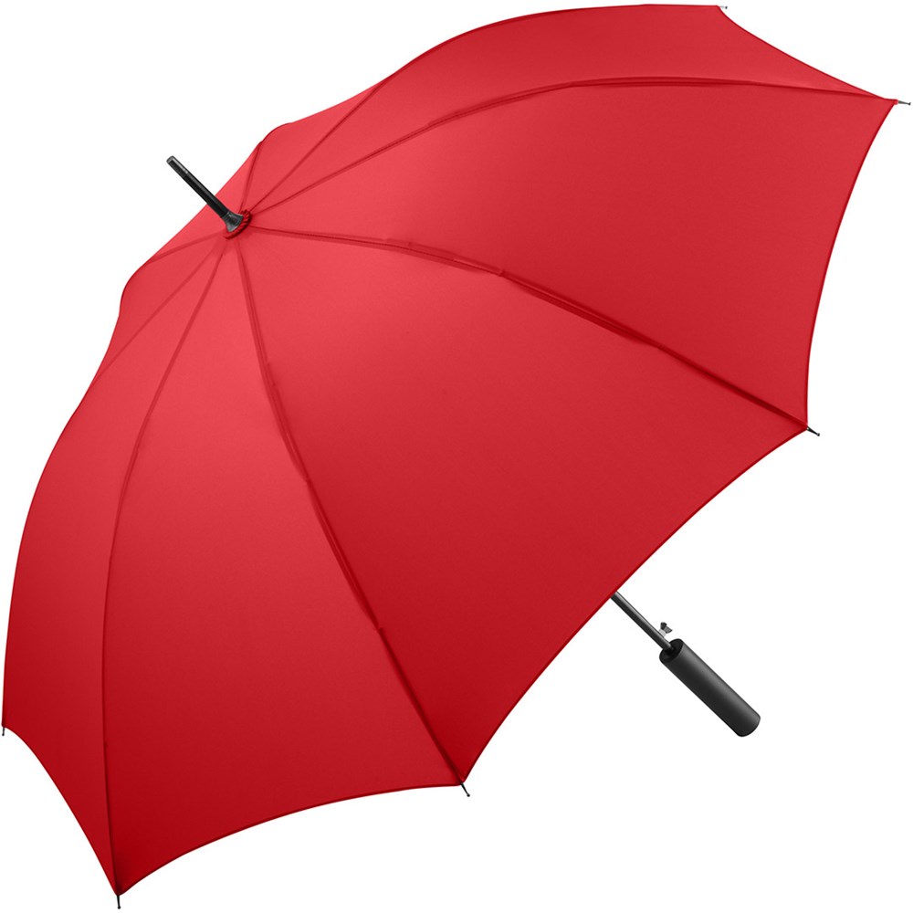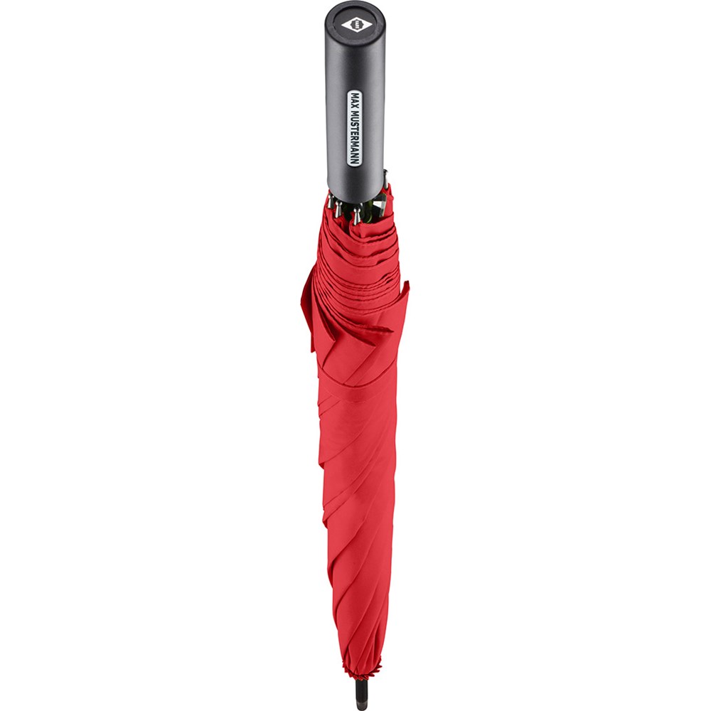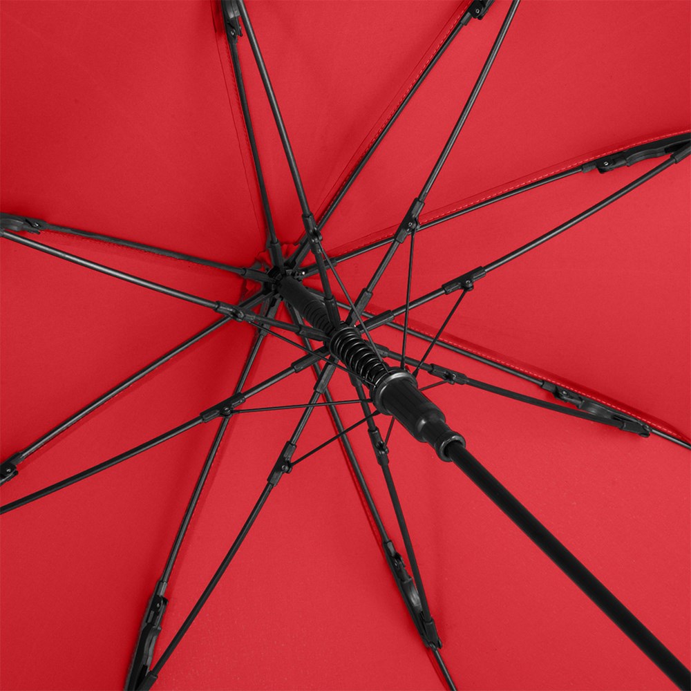 Preislich attraktiver Automatik-Stockschirm mit doppelter Werbeanbringungsmöglichkeit am Griff Komfortable Automatik-Funktion zum schnellen Öffnen, hochwertiges Windproof-PLUS-System für eine maximale Gestell-Flexibilität bei stärkeren Windböen, flexible Fiberglasschienen, gerader Griff mit doppelter Werbeanbringungsmöglichkeit, höherer Korrosionsschutz durch schwarze Galvanisierung des Stahlstocks