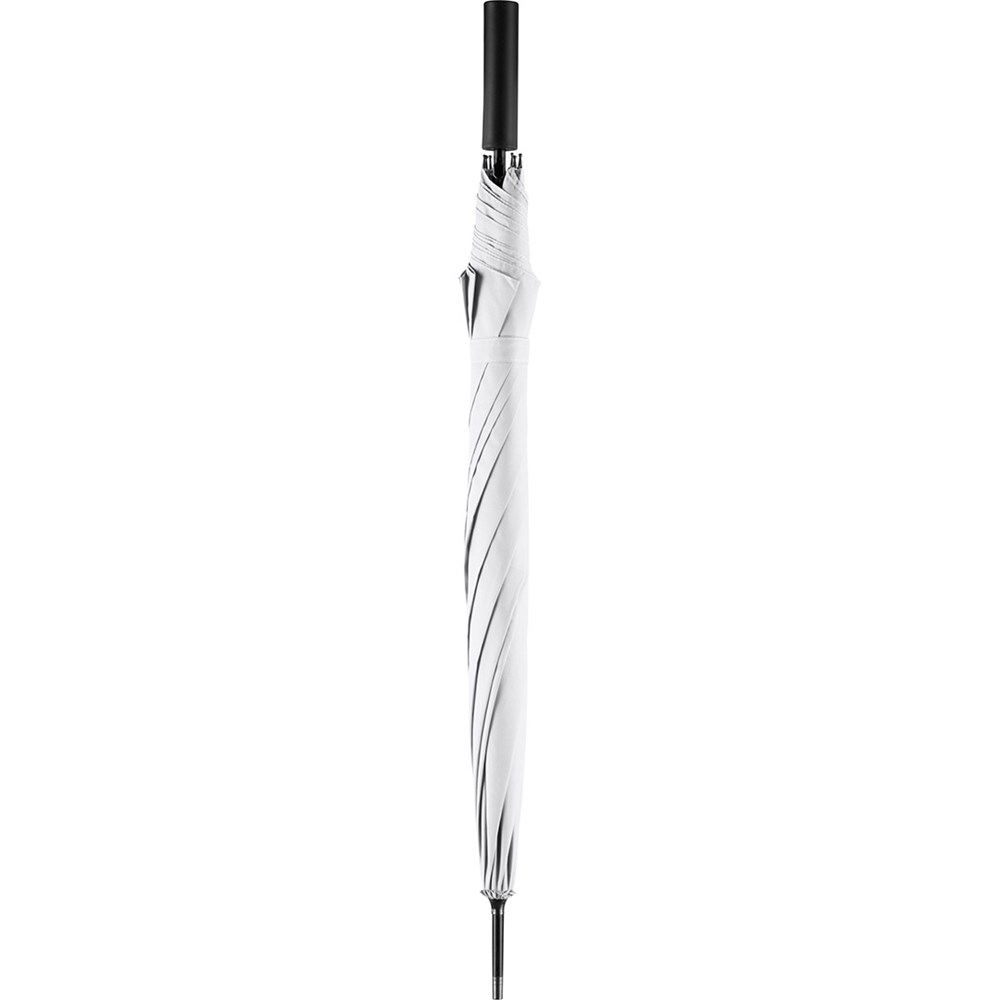 Preislich attraktiver Automatik-Stockschirm mit doppelter Werbeanbringungsmöglichkeit am Griff Komfortable Automatik-Funktion zum schnellen Öffnen, hochwertiges Windproof-PLUS-System für eine maximale Gestell-Flexibilität bei stärkeren Windböen, flexible Fiberglasschienen, gerader Griff mit doppelter Werbeanbringungsmöglichkeit, höherer Korrosionsschutz durch schwarze Galvanisierung des Stahlstocks