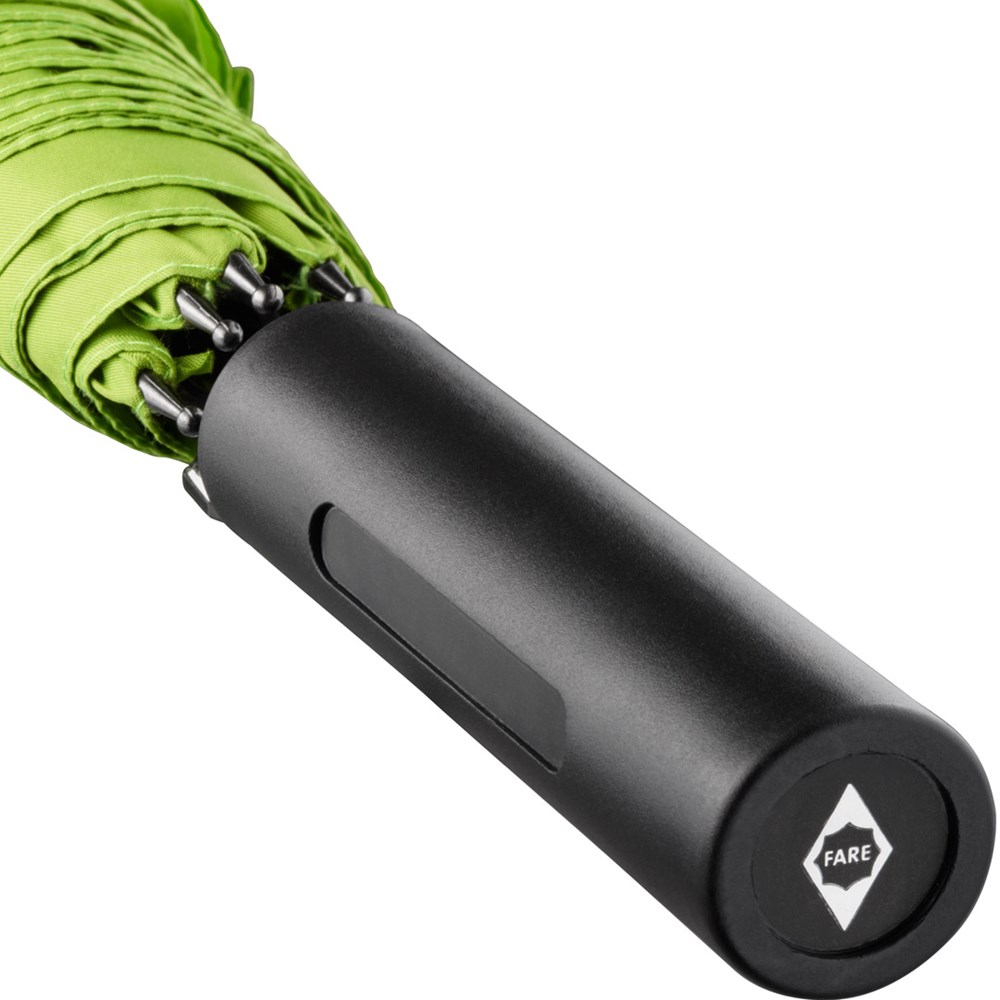 Preislich attraktiver Automatik-Stockschirm mit doppelter Werbeanbringungsmöglichkeit am Griff Komfortable Automatik-Funktion zum schnellen Öffnen, hochwertiges Windproof-PLUS-System für eine maximale Gestell-Flexibilität bei stärkeren Windböen, flexible Fiberglasschienen, gerader Griff mit doppelter Werbeanbringungsmöglichkeit, höherer Korrosionsschutz durch schwarze Galvanisierung des Stahlstocks