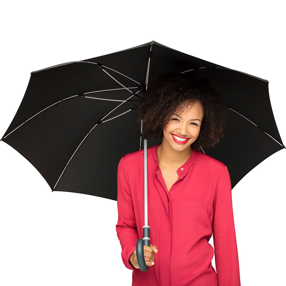 | Material: | Bezug: 100% Polyester-Pongee (recycelt & waterSAVE®) Griff: Kunststoff Stock: Stahl, Kunststoff |