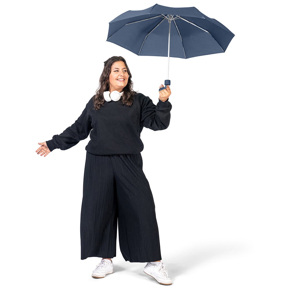 Ultraleichter Handöffner-Taschenschirm mit Aluminiumgestell Einfache Handhabung durch Sicherheitsschieber, Windproof-System für höhere Gestell-Flexibilität und bessere Windsicherheit, Soft-Touch-Griff mit Werbeanbringungsmöglichkeit, handtaschentauglich durch ultraleichtes Gewicht
