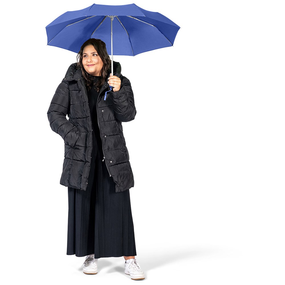 Ultraleichter Handöffner-Taschenschirm mit Aluminiumgestell Einfache Handhabung durch Sicherheitsschieber, Windproof-System für höhere Gestell-Flexibilität und bessere Windsicherheit, Soft-Touch-Griff mit Werbeanbringungsmöglichkeit, handtaschentauglich durch ultraleichtes Gewicht