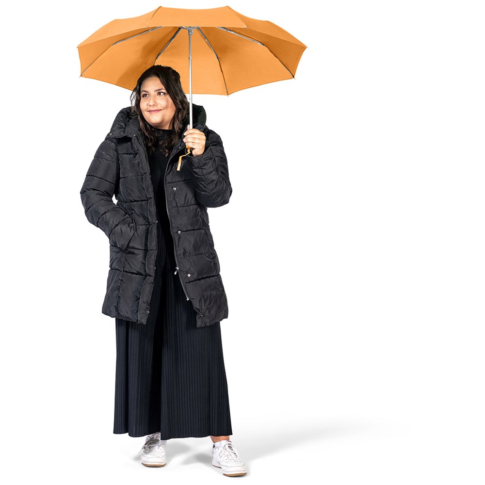 Ultraleichter Handöffner-Taschenschirm mit Aluminiumgestell Einfache Handhabung durch Sicherheitsschieber, Windproof-System für höhere Gestell-Flexibilität und bessere Windsicherheit, Soft-Touch-Griff mit Werbeanbringungsmöglichkeit, handtaschentauglich durch ultraleichtes Gewicht