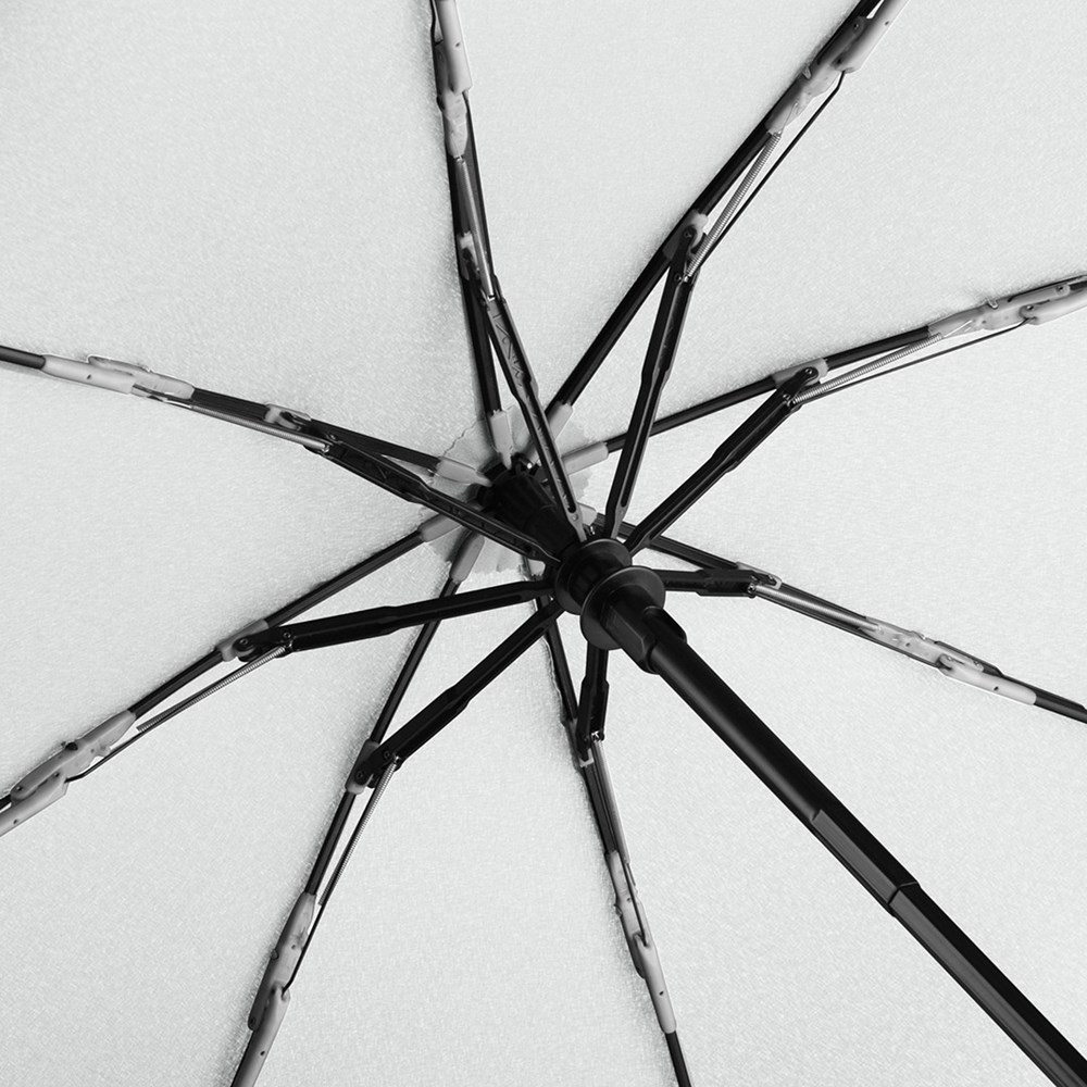 Exklusiver Doppelautomatik-Taschenschirm mit Reifenprofil-Design-Elementen Komfortable Automatik-Funktion zum schnellen Öffnen und Schließen, hochwertiges Windproof-PLUS-System für eine maximale Gestell-Flexibilität bei stärkeren Windböen, stabile Fiberglasschienen mit grauen Gelenken, handsympathischer Soft-Feel-Griff mit integrierter Auslösetaste und Werbeanbringungsmöglichkeit, komfortables Futteral mit Druckknopf. Auch als Golf-/Gästeschirm (Art. 7355) erhältlich.