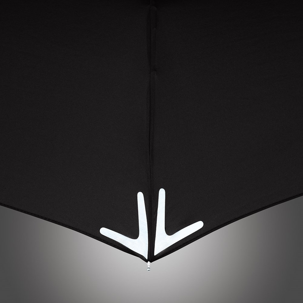 Raffinierter Handöffner-Taschenschirm mit modischen Reflektoren an den Segmentecken Einfache Handhabung durch Sicherheitsschieber, hochwertiges Windproof-PLUS-System für eine maximale Gestell-Flexibilität bei stärkeren Windböen, Bezug mit 3M™ Scotchlite™ Reflective Material an den Segmentecken als modisches Detail, ergonomisch geformter Soft-Feel-Griff, komfortables Futteral mit Druckknopf, ausgezeichnet mit dem reddot design award honourable mention 2011. Weitere Safebrella®-Schirme: 5171, 5471, 5571 und 7571.