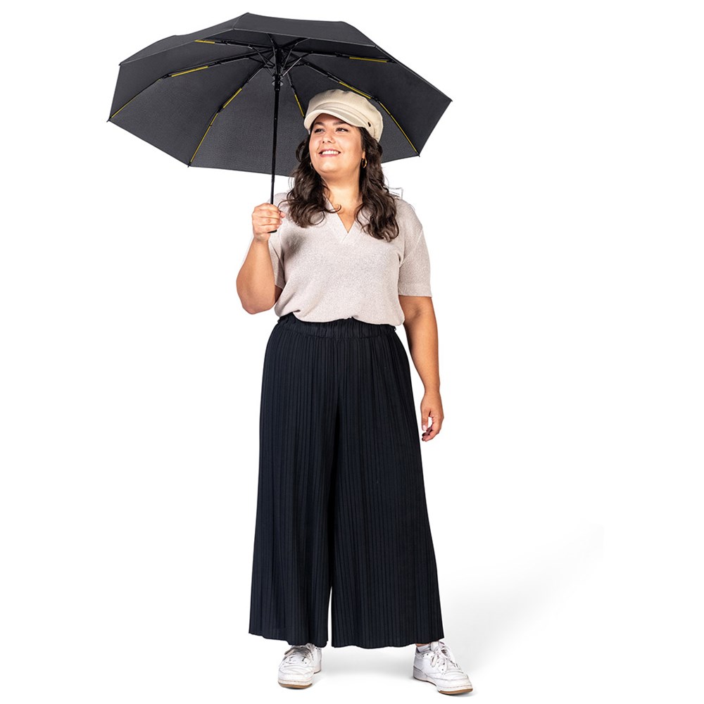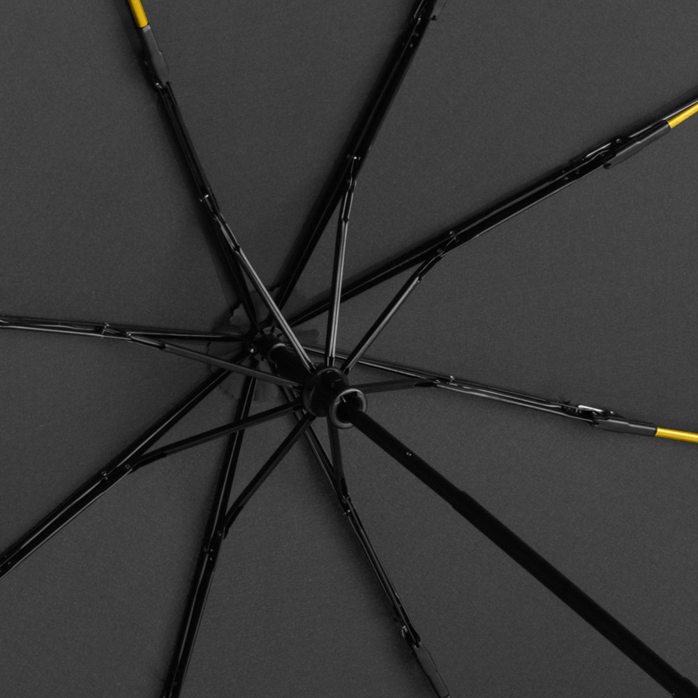 Stylischer Handöffner-Taschenschirm in Schwarz mit farbigen Elementen Einfache Handhabung durch Sicherheitsschieber, hochwertiges Windproof-PLUS-System für eine maximale Gestell-Flexibilität bei stärkeren Windböen, flexible Fiberglasschienen, Polyester-Pongee Bezugsmaterial aus recycelten Kunststoffen, umweltfreundlich dank original waterSAVE Bezugsmaterial, mit waterSAVE®-Label auf dem Schließband, ansprechendes Design durch farbige Schienen, Griffringe und Nähte, Soft-Feel-Griff mit Werbeanbringungsmöglichkeit, Futteral mit farbiger Naht. Auch als Taschenschirm (Art. 5484, 5584), Midsize-Schirm (Art. 4784) und Gästeschirm (Art. 2384) erhältlich.