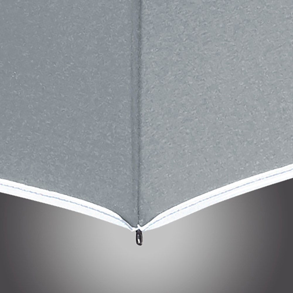 Trendiger Doppelautomatik-Taschenschirm mit modisch reflektierender Außenbeschichtung auf zwei Segmenten Komfortable Doppelautomatik-Funktion zum schnellen Öffnen und Schließen, hochwertiges Windproof-PLUS-System für eine maximale Gestell-Flexibilität bei stärkeren Windböen, zwei Segmente und modische Paspelierung mit farblich zum Bezug passender und modisch reflektierender Beschichtung, Soft-Feel-Griff mit integrierter Auslösetaste und Werbeanbringungsmöglichkeit, Futteral mit modischer Reflexpaspel. Auch als Gästeschirm (Art. 7377) erhältlich.
