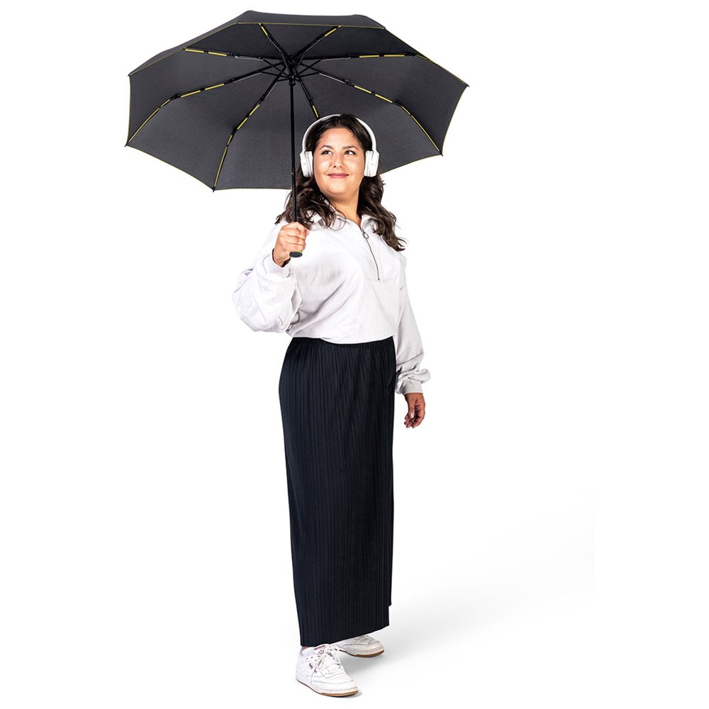 | Material: | Bezug: 100% Polyester-Pongee (recycelt & waterSAVE®) Griff: Kunststoff Stock: Stahl |