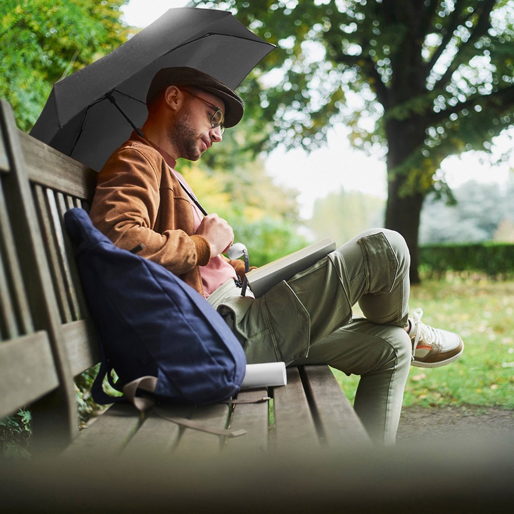 Praktischer Handöffner-Taschenschirm mit Windproof-PLUS-System in Tube Einfache Handhabung durch Sicherheitsschieber, hochwertiges Windproof-PLUS-System für eine maximale Gestell-Flexibilität bei stärkeren Windböen, Kunststoffgriff mit Tragekordel aus Bezugsmaterial farblich auf den Bezug abgestimmt, spezieller Griff mit Silikonring sorgt für dichtes Schließen der Verpackung, Tube aus Kunststoff mit Gummilippe zum Ablassen des Wassers und für sicheren Transport des nassen Schirms