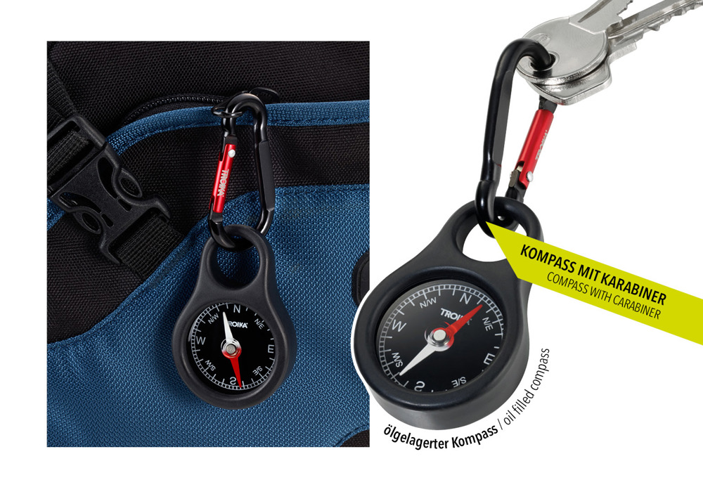 Schlüsselanhänger mit Kompass, inkl. Karabinerhaken, ABS, Acryl, Aluminium, PVC, rot/schwarz mehr