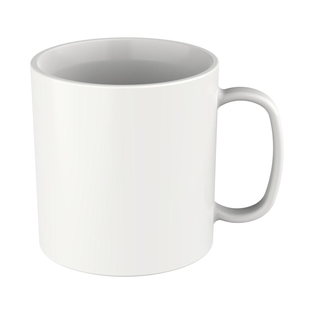 Sieht aus wie Porzellan, ist aber Kunststoff. Der großzügige Henkel, der angenehm rundgeformte Trinkrand und die standfeste Form machen diesen Becher unverzichtbar. Füllmenge: 0,3 Liter.